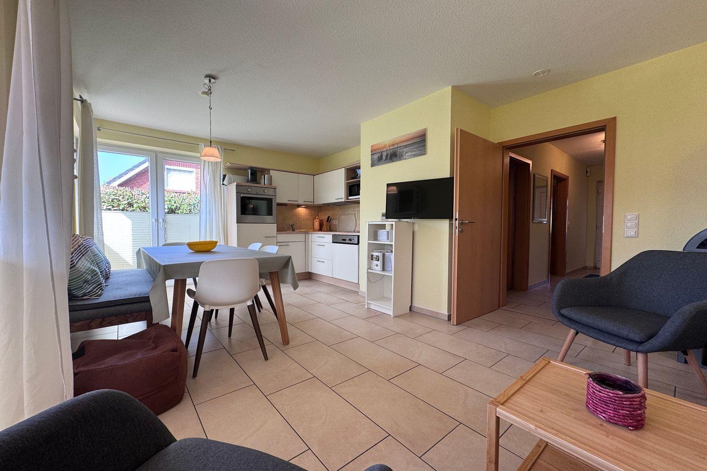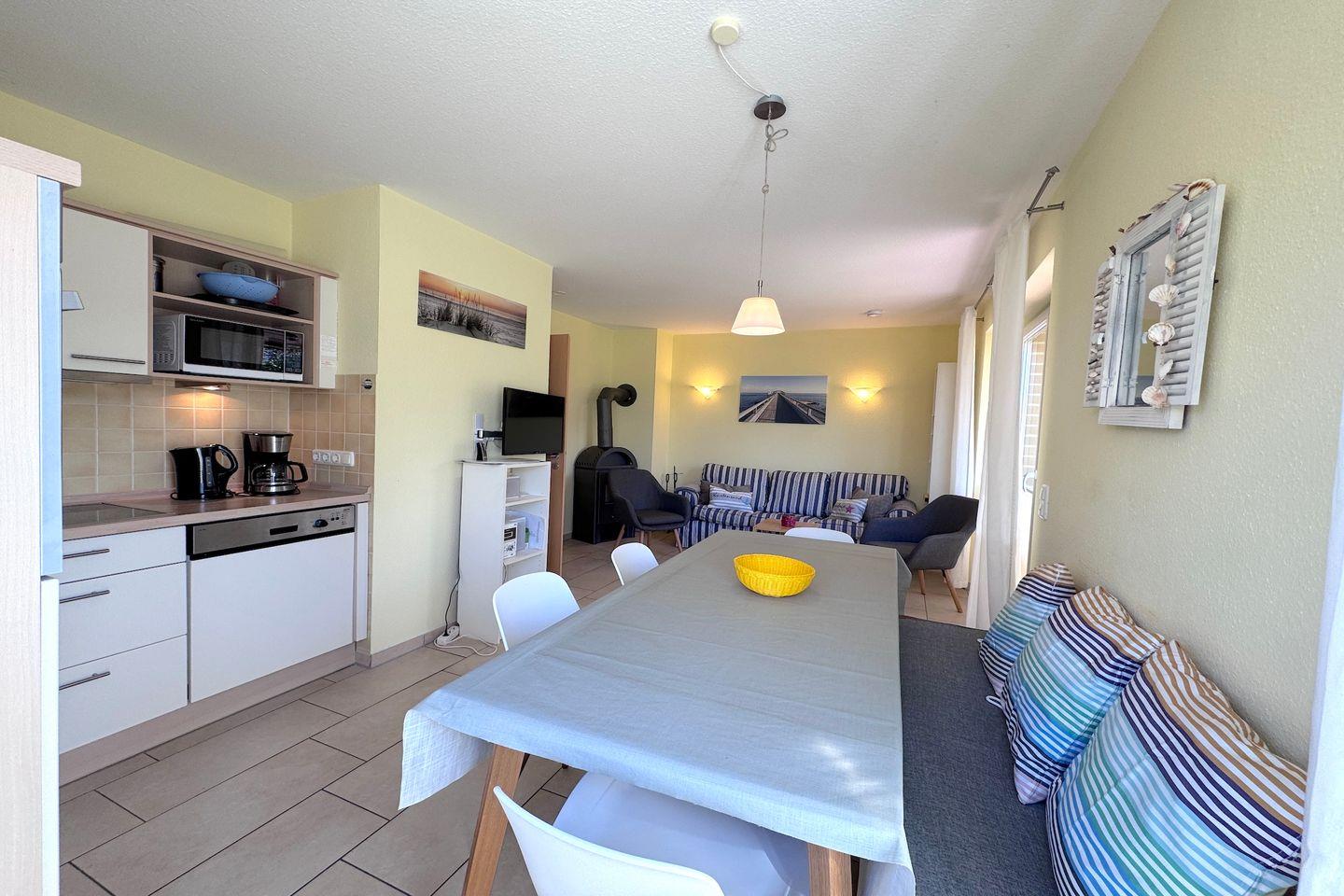 Passend zu Kellenhusen und dem Spruch "zwischen Wald und Wellen" gibt es auch die Doppelhaushälfte "Wald". Ruhig und dennoch zentral gelegen ist das Objekt mit ca. 90 qm für bis zu 6 Personen geeignet. Im Erdgeschoss befindet sich der helle Wohnbereich mit integrierter Küche und Essbereich, auch ein Kaminofen für kuschelige Abende ist vorhanden und macht die Entspannung noch perfekt. Zum Kochen bietet die Küche einen Backofen auf Augenhöhe, eine Mikrowelle, ein Gefrierfach im Kühlschrank und auch eine Geschirrspülmaschine. Das im Erdgeschoss liegende Badezimmer ist mit Dusche ausgestattet und barrierearm. Außerdem ist auch eines der Schlafzimmer unten gelegen, dieses ist mit einem Doppelbett (2 Matratzen á 0,90x2,00m) ausgestattet. In der oberen Etage befindet sich ein weiteres Badezimmer und zwei Schlafräume. Einmal mit Doppelbett (2 Matratzen á 0,90x2,00m), Fernseher und Schrank, sowie einmal mit zwei Einzelbetten (0,90x2,00m) und Schrank. Für die ganz kleinen Gäste gibt es ein Kinder-Reisebett und einen Hochstuhl. Der Garten und die Terrasse haben Süd-West-Lage und sind somit bestens gelegen. Aber auch der schöne Strand von Kellenhusen ist nur wenige Meter entfernt und kann mit einem 3 minütigen Spaziergang erreicht werden. Auch dem Urlaub mit dem Haustier steht generell nichts im Wege, denn nach Rücksprache und gegen Aufpreis sind Haustiere gestattet. Sollte das Reisegepäck so gering wie möglich ausfallen, dann ist ein Wäschepaket für den Aufenthalt in Kellenhusen gegen Gebühr einfach buchbar und auch eine Waschmaschine und ein Trockner sind in der Wohnung vorhanden.