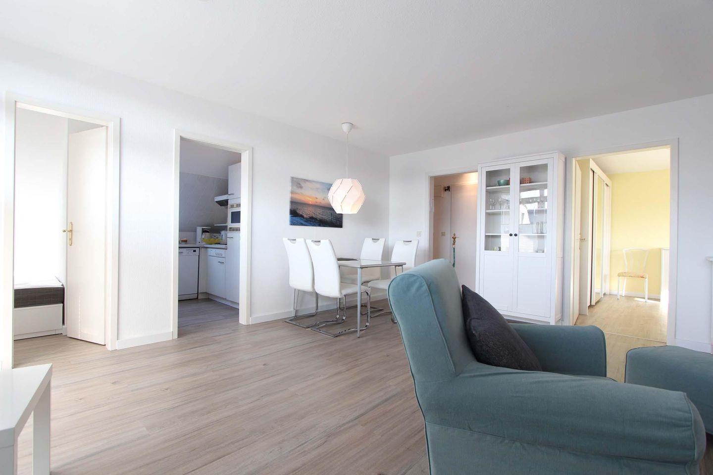 Haus Elisabeth Whg. 3 OG bietet Ihnen auf 68 m² im 1. Stock ein komfortables Ambiente für bis zu 4 Personen, 2 Erwachsene und 2 Kinder. Die moderne Wohnung umfasst zwei Schlafzimmer, ein Badezimmer mit Dusche, eine offene Küche, WLAN, zwei TVs sowie einen überdachten Balkon. Strand, Supermarkt und öffentliche Verkehrsmittel sind bequem erreichbar. Ein Privatparkplatz sowie Waschmaschine und Trockner zur gemeinschaftlichen Nutzung sind vorhanden.