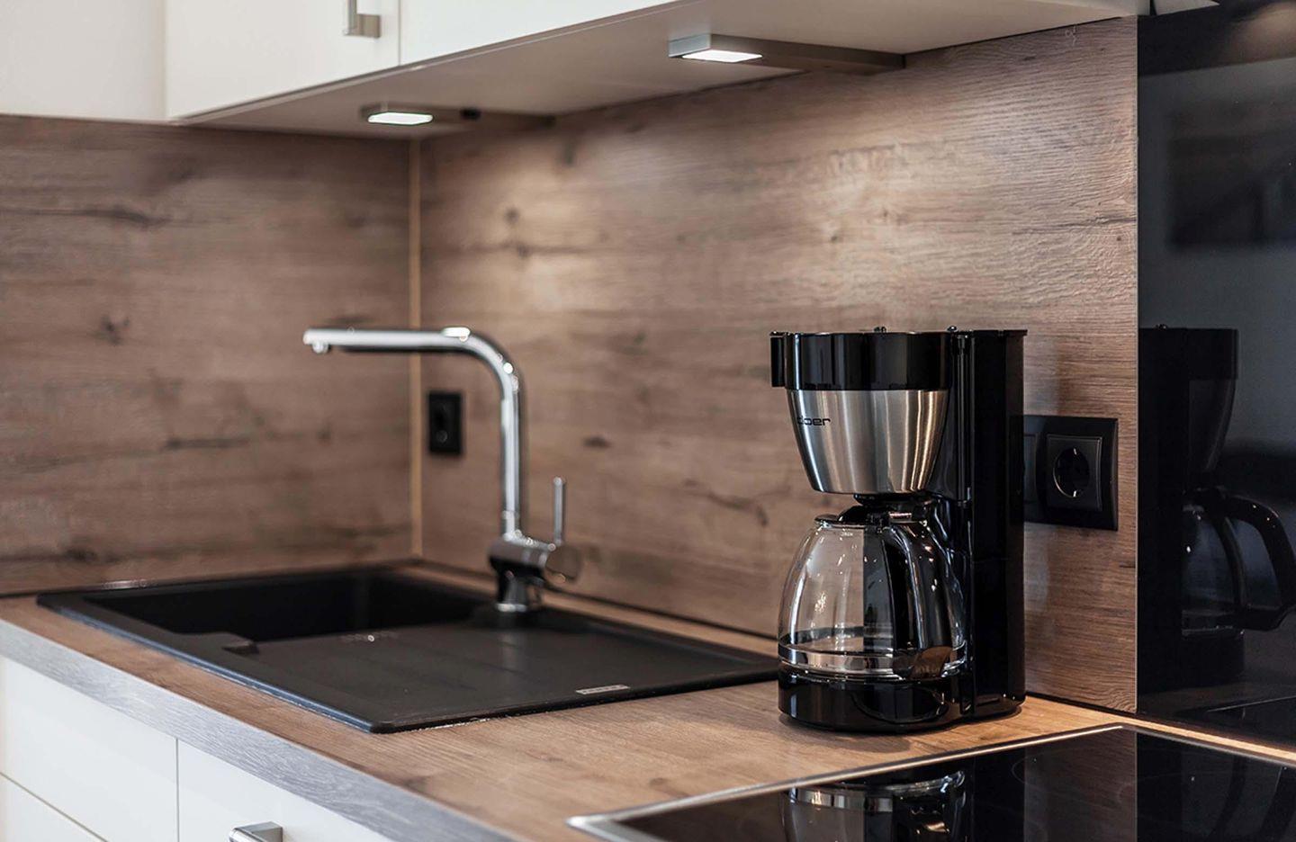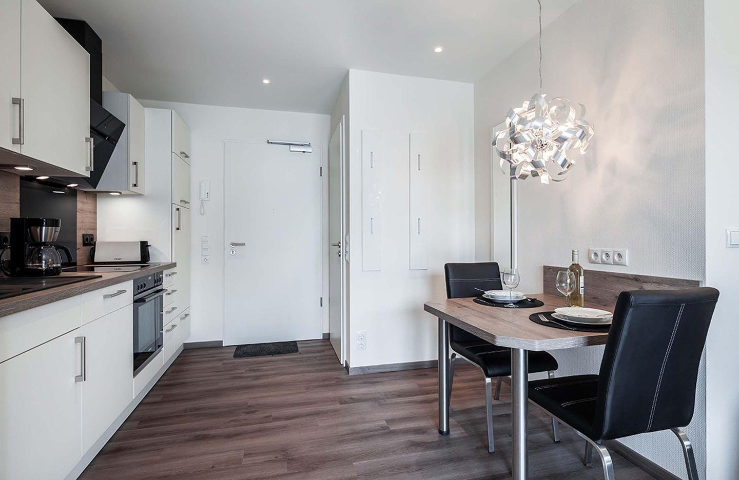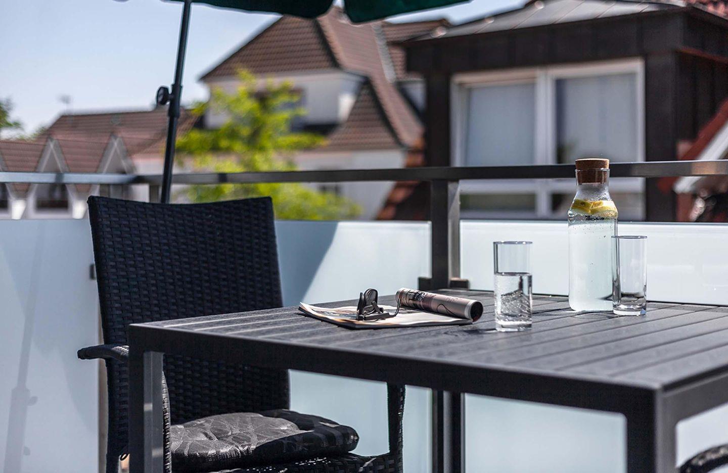 Nur einen Katzensprung von Seebrücke, Strand und Promenade entfernt liegt die im Frühjahr 2019 fertiggestellte Ferienwohnanlage „Sonnengarten“ mit insgesamt 24 Ferienwohnungen und einem Café im Erdgeschoss. Der hintere Bereich des Gebäudes ist gestalterisch sehr ansprechend begrünt und hat den Charakter eines großzügigen Gartens. Hier können die Gäste der Anlage im wahrsten Sinne des Wortes ihre „die Seele baumeln lassen“. Mitgebrachte Fahrräder können in dem großen und überdachten Fahrradstellplatz am Haus abgestellt werden. Die moderne und hochwertig eingerichtete 2-Zimmer Ferienwohnung „Oase im Sonnengarten“ befindet sich im Dachgeschoss dieser exklusiven Ferienwohnanlage. Eine großzügige Loggia mit ansprechenden dunklen Dielen ist dabei nach Süd-Westen (zum Meer) ausgerichtet und bietet den Gästen die perfekte Sonneneinstrahlung. Bei einem weitreichenden Ausblick, z. B. bei einem schönen Frühstück auf der Loggia, kann der Gast seine Blicke über die Ostsee streifen lassen. Die ca. 45 qm Ferienwohnung mit angenehmer Fußbodenheizung ist für 2 Personen ausgelegt und verfügt über ein modern und hell eingerichtetes und komfortabel Ambiente. Über das Wohnzimmer gelangt der Gast zur möblierten Ostsee-Loggia. Ein kostenloses WLAN und einen hauseigenen Tiefgaragenstellplatz (Nr. 12) gehört zum Standard dieser Wohnung. Aus der Tiefgarage bringen zwei Fahrstühle den Gast bis unmittelbar vor die Wohnungseingangstür. Das Wohnzimmer mit allergiker-freundlichen und fußwarmen Design-Vinyl-Dielen, einer vollausgestatteten/integrierten Küche, einem Ess- und Couchtisch mit einer großer schwarzen Couch und einem 40“ Flat Screen TV (SAT) bietet alles, was man zu einem Traum-Urlaub braucht. Warmweiße LED Deckenstrahler unterstreichen den hellen Charakter dieser Wohnung. Die komfortabel eingerichtete Marken-Küche umfasst einen Kühlschrank mit separatem Gefrierfach, Spülmaschine, 4-fach Ceran-Feld mit Backofen, Mikrowelle sowie eine Kaffeemaschine, Toaster, Wasser- und Eierkocher. Die Ausstattung mit Besteck, Gläsern und Geschirr sowie an hilfreichen Küchenutensilien lässt keine Wünsche offen. Das separate Schlafzimmer mit einem großen Dachgeschossfenster und einem elektrischen Rollo hat ein Doppelbett mit bequemen Matratzen, Nachtkonsolen und Leselampen. In dem beleuchteten Kleiderschrank sowie in einem Sideboard kann die mitgebrachte Kleidung gut verstaut werden. Ein weiterer 40“ Flat Screen TV (SAT) ermöglicht das Anschauen eines TV Programms bequem und stressfrei aus dem Bett heraus. Als Bodenbelag wurden die gleichen, allergiker-freundlichen und fußwarmen Design-Vinyl-Dielen (besonders angenehm, wenn man morgens barfuß aus dem Bett steigt) wie im Wohnzimmer gewählt. In dem Traum-Badezimmer mit edlen Schieferfliesen auf dem Boden und an der Wand findet der Gast eine hochwertige Sanitärausstattung mit einer großen Walk-in Raindance-Dusche. Weiter hat das Bad eine nur der Wohnung zugehörige Infrarot-Sauna für 2 Personen. Diese moderne Infrarotkabine mit eingebauter Fußbodenheizung ist für Jung und Alt gleichermaßen sehr gut geeignet (keine Nutzung bei akute Entzündungen, Herzleiden oder sehr hohem Blutdruck), da sie nicht besonders körperlich belastend ist und sich kein Erschöpfungsgefühl (wie z. B. bei einer finnischen Sauna) nach dem Besuch der Infrarot-Kabine einstellt. Diese Infrarotkabine lindert durch ihre Tiefenwärme Verspannungen und rheumatische Beschwerden, sie entschlackt, stärkt das Immunsystem und steigert das allgemeine Wohlbefinden. Selbst wenn Erkältungssymptome schon erkennbar sind, darf man diese Infrarot-Sauna aufsuchen, denn sie bekämpft diese Symptome durch ihre funktionalen Eigenschaften. Bei Bedarf kann ein Sauerstoff-Ionisierer (für Pollen-Allergiker sehr gut geeignet) dazu geschaltet werden, der die Raumluft keimfreier macht, wie nach einem Gewitterregen oder an der Meeresluft. Auch besteht die Möglichkeit Farblichter in der Kabine individuell einzustellen, um das persönliche Wohlbefinden zu steigern. Ein integrierter CD Player für entspannte Musik während des Besuchs gehört zum Standard dieser Kabine.