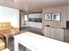 Vollausgestattete Küche und großzügiges Wohnzimmer.