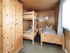 Ein Schlafraum mit Doppelbett und ein weiterer Schlafraum mit Doppelstockbett und einem weiteren Einzelbett.