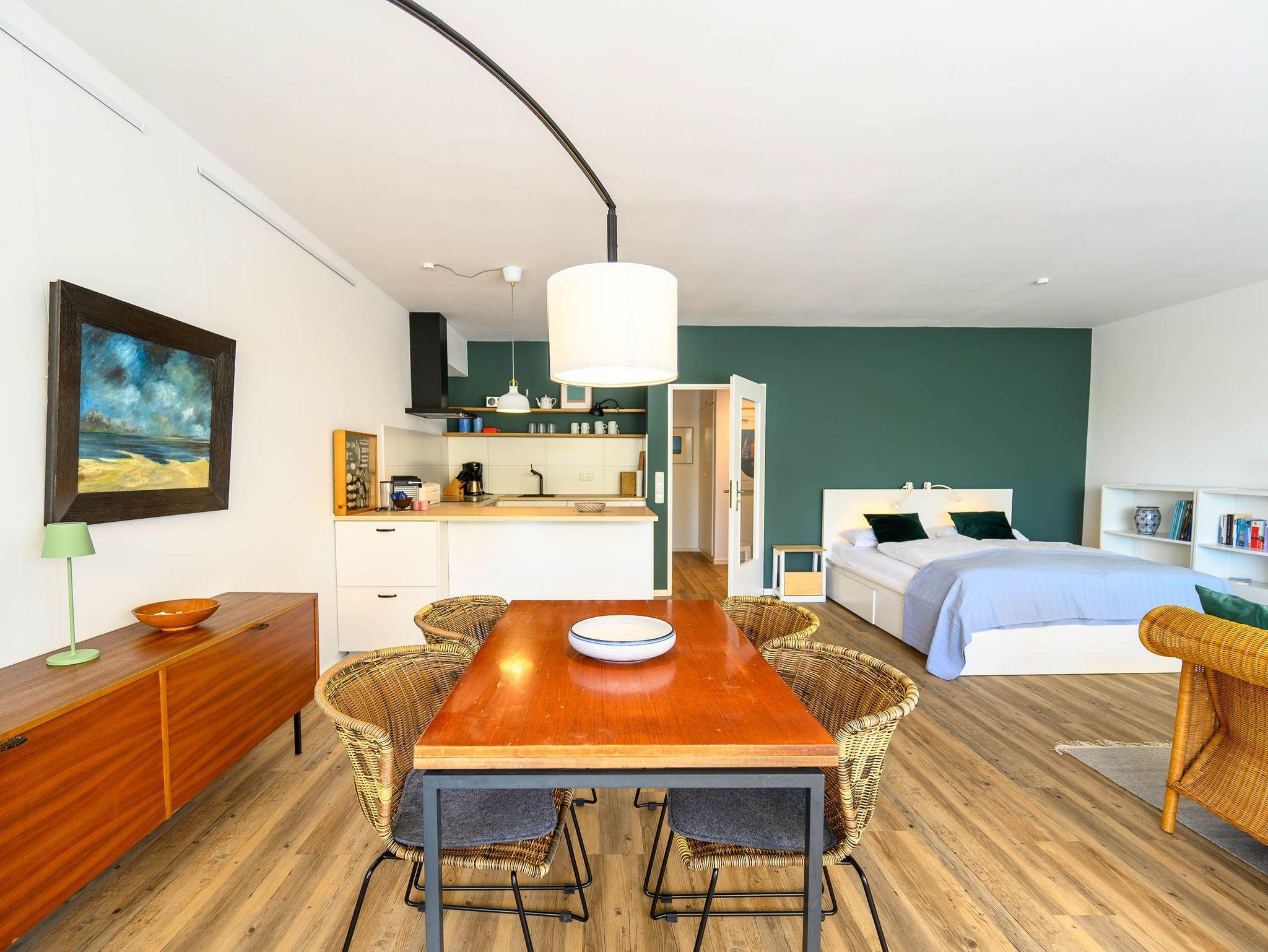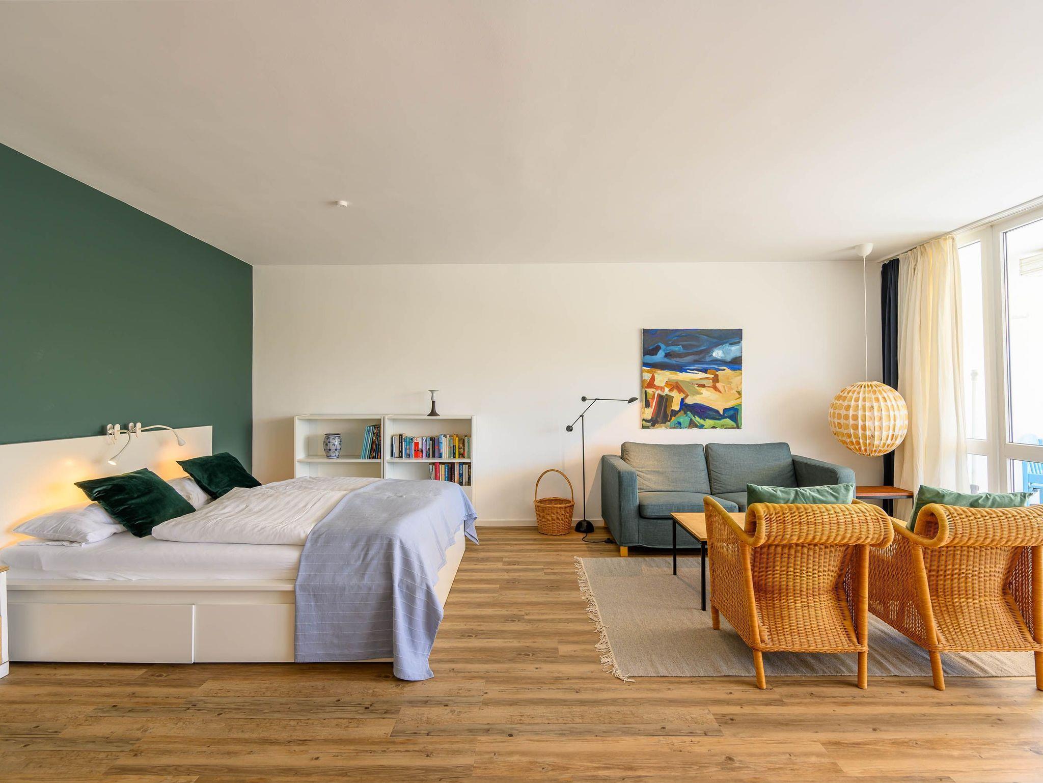Die Wohnung befindet sich im „Fliegender Holländer“ in der 1. Etage ohne Fahrstuhl und besticht durch ihre moderne Ausstattung und die Nähe zum Strand. Die Wohnung ist vollständig eingerichtet und verfügt über ein gemütliches Doppelbett sowie ein Schlafsofa (beide 160 x 200 cm), eine offene Wohnküche und ein modernes Duschbad. Der Wohnbereich lädt mit seinem Flachbild-TV und einer komfortablen Ausstattung zum Entspannen ein, während die Küche mit Geschirrspüler, Kaffeemaschine und weiteren Annehmlichkeiten keine Wünsche offen lässt.