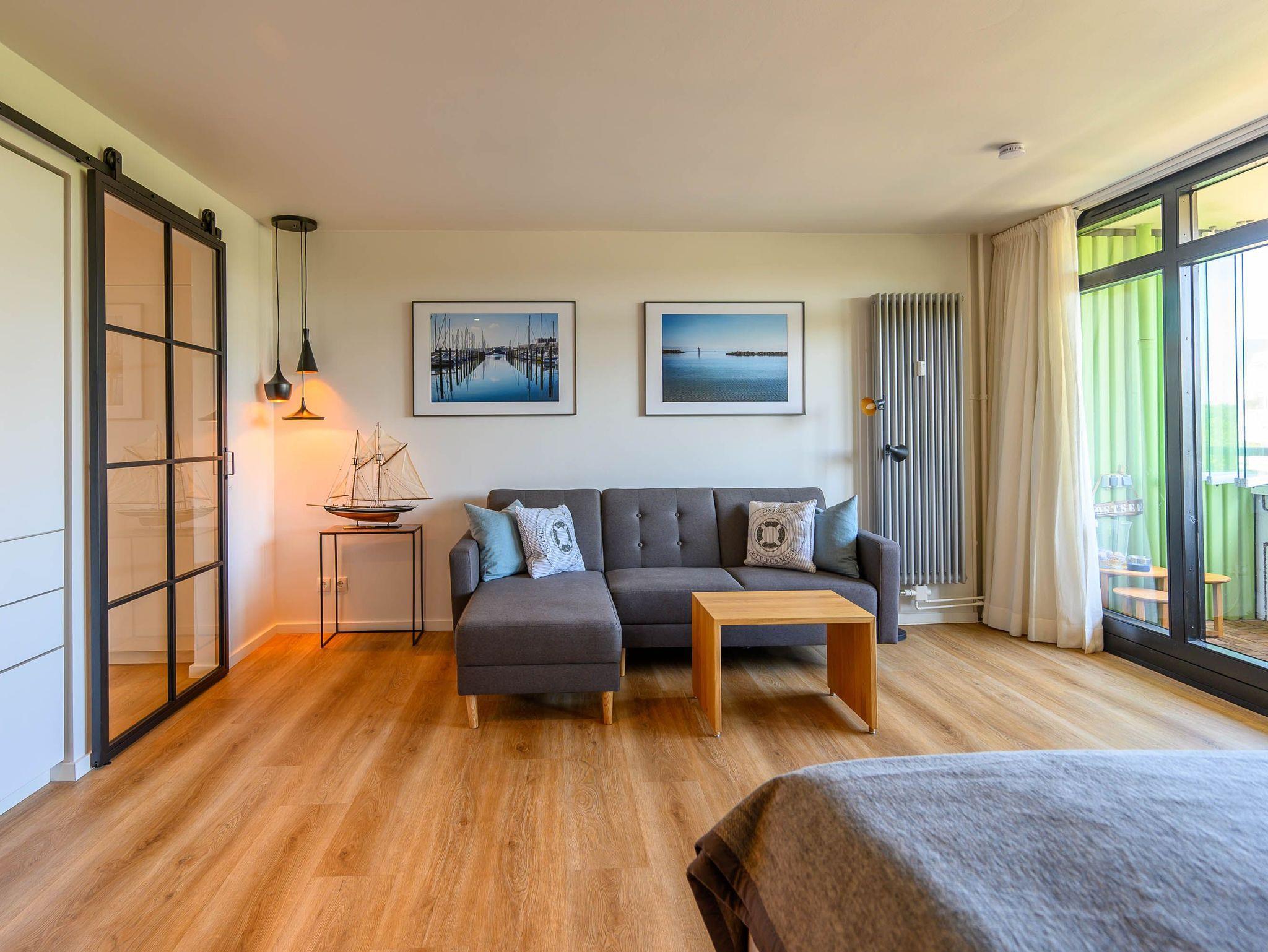 Modernes 1-Zimmer-Appartement mit Balkon, Meerblick und hochwertiger Ausstattung im Olympia Hotel Kiel Schilksee.