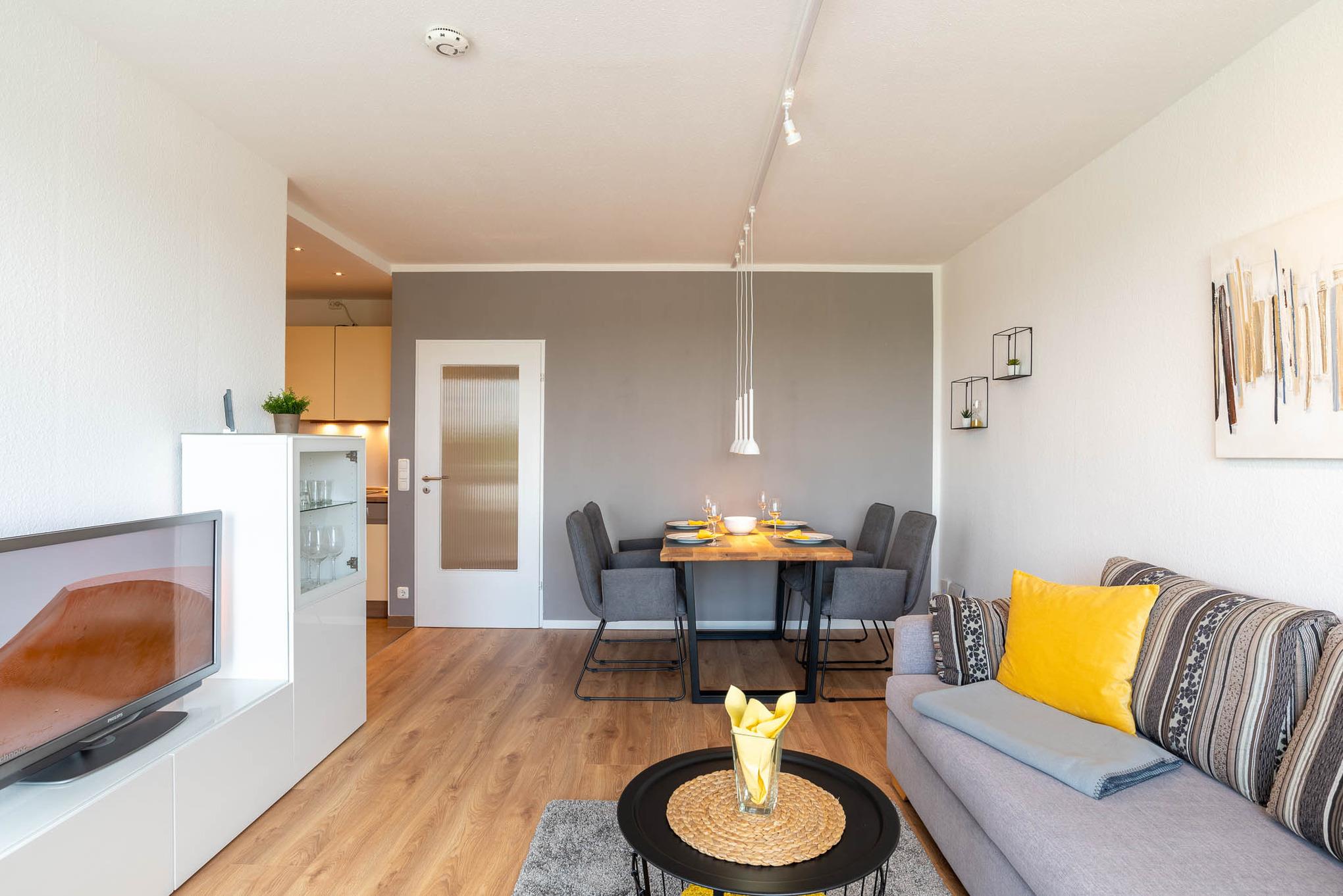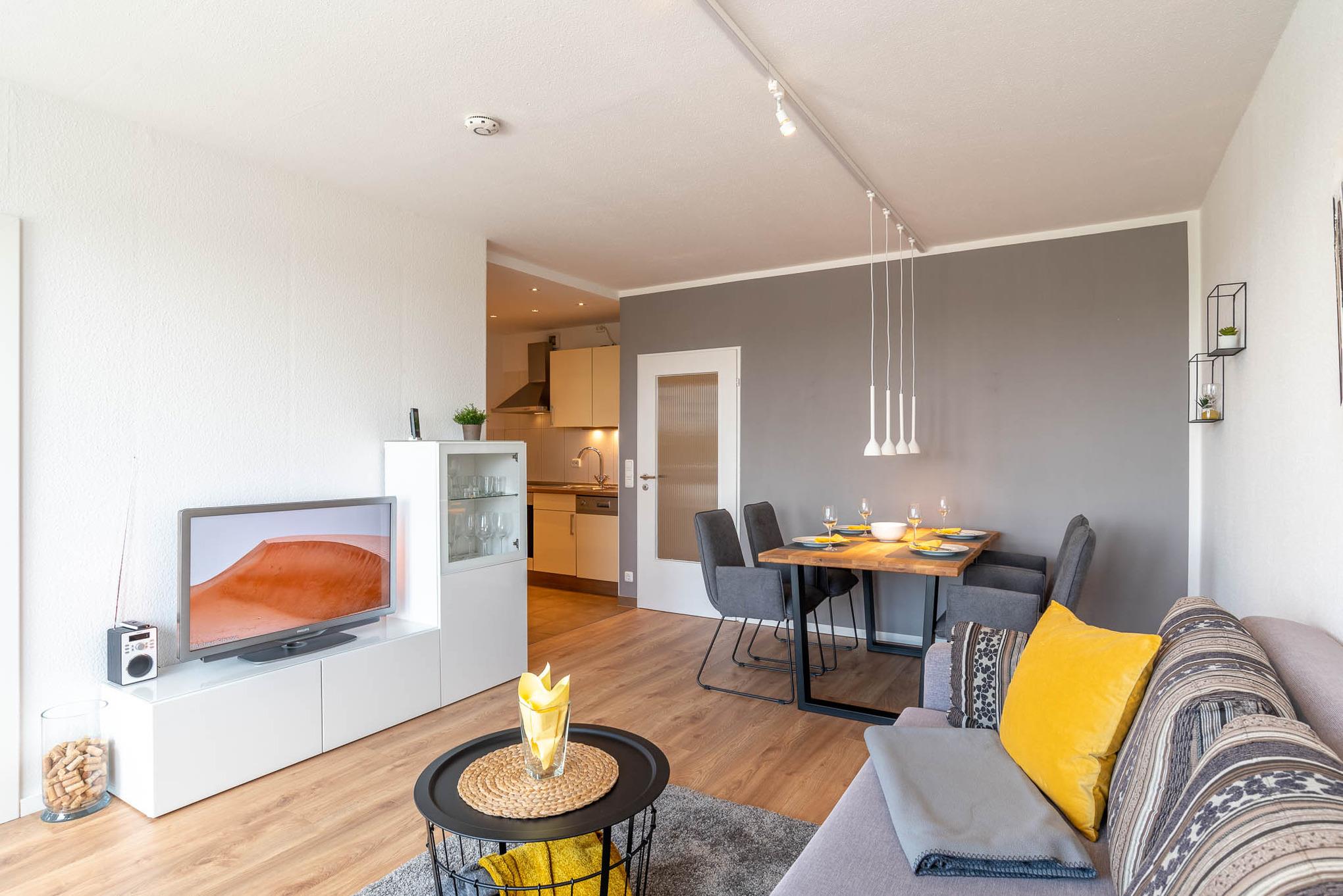 Moderne Ferienwohnung 'Captain Jack' mit Balkon und WLAN in Kiel-Schilksee, ideal für entspannte Städtereisen.