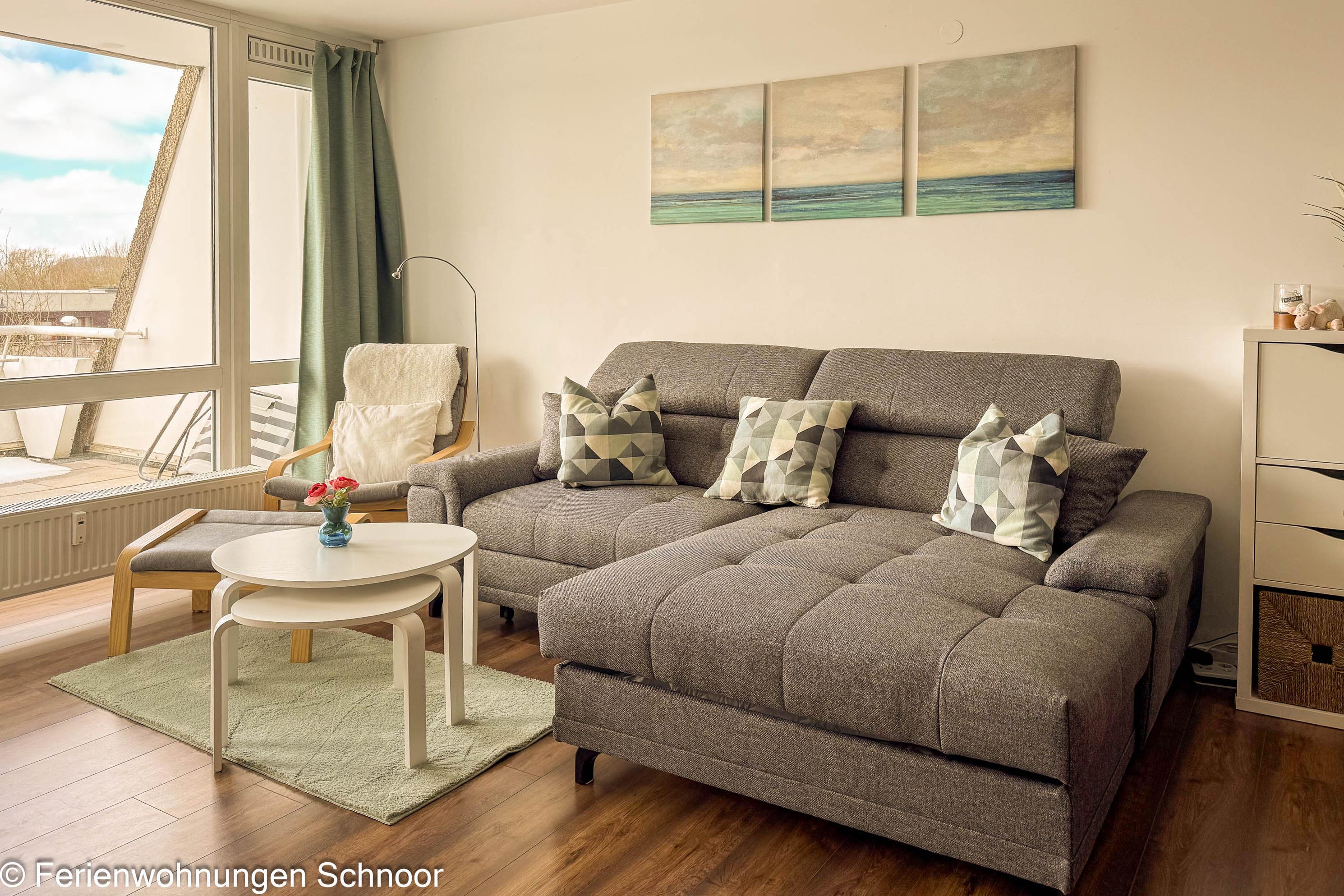Moderne Ferienwohnung in Kiel-Schilksee mit großem Balkon und skandinavischem Stil, ideal für entspannte Tage am Meer.