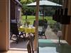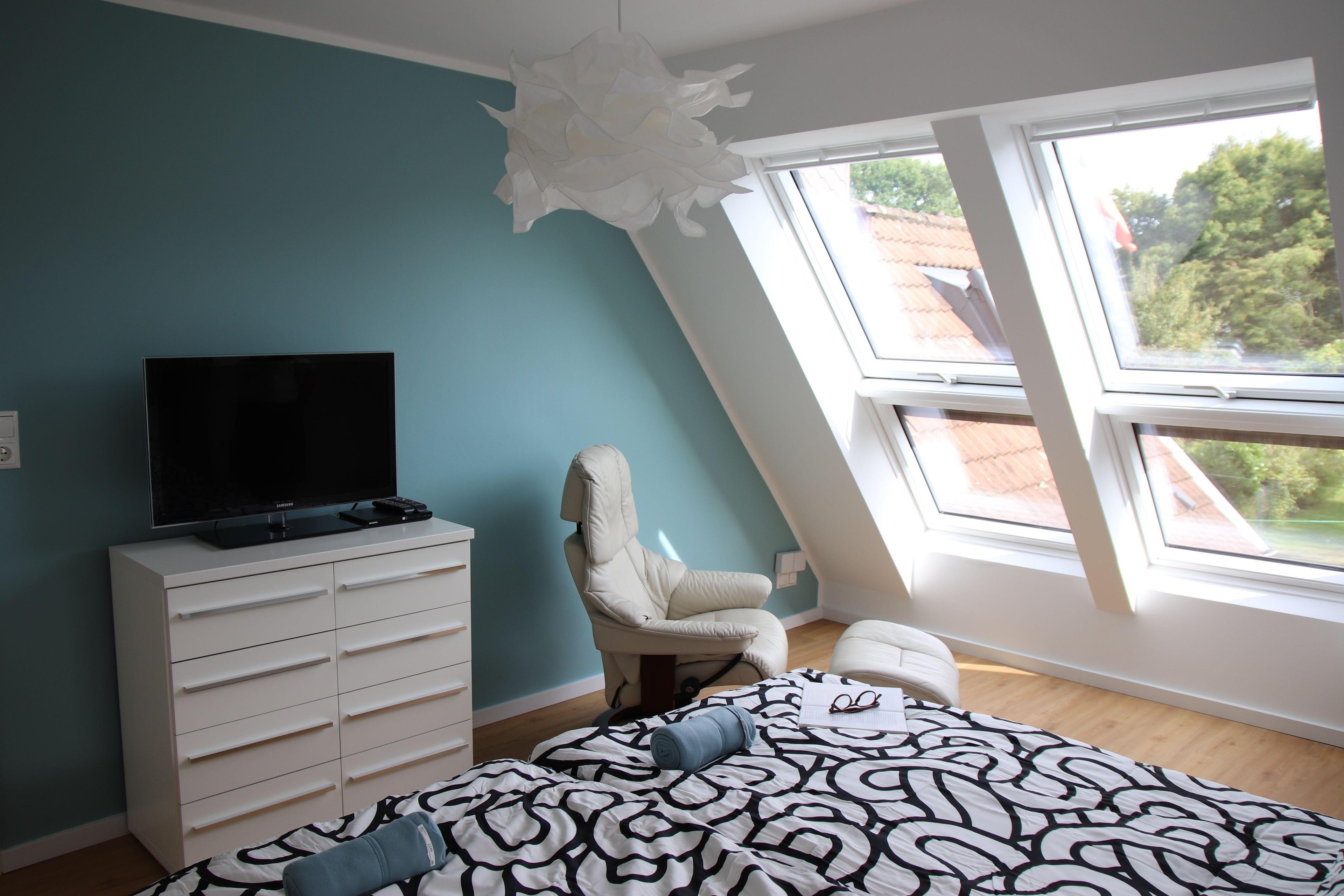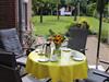Von der 25 qm großen Terasse haben Sie einen entspannten Blick auf die in einem rund 400 qm großen Garten stehenden Obstbäume. Zum Ferienhaus gehört ein überdachter PKW- Stellplatz. Mitgebrachte oder gemietete Fahrräder können in einem Unterstand wettergeschützt abgestellt werden.