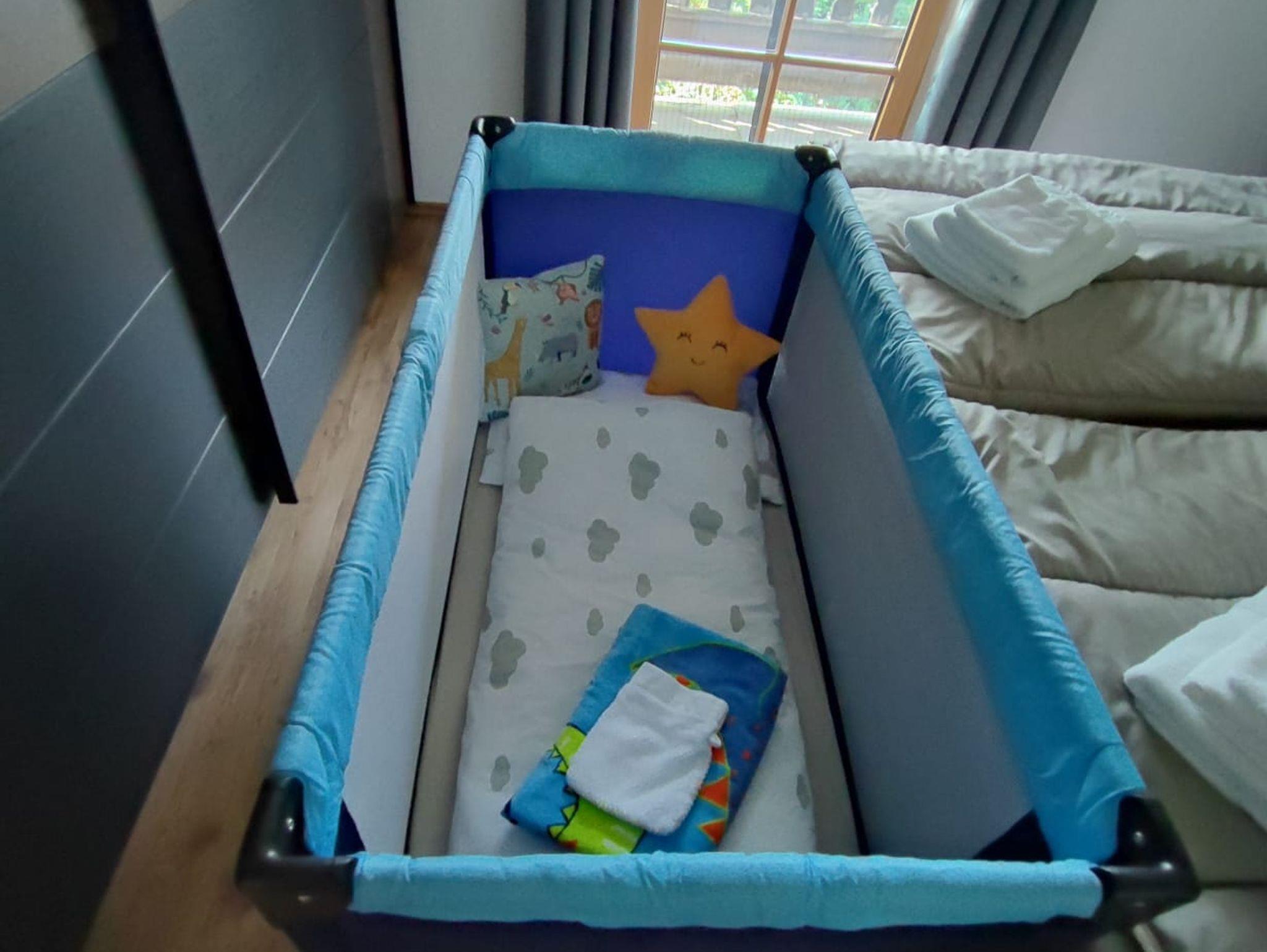 • Boxspringbett (180x200 cm), Kinderreisebett verfügbar.