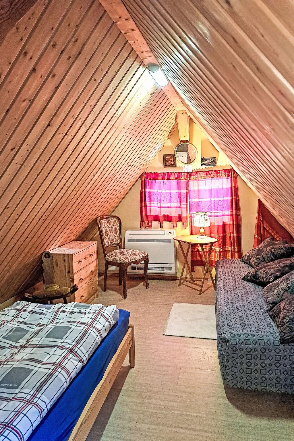 Weitere Schlafzimmerausstattung: Großes Doppelbett, Schreibtisch, Kleiderschrank, Sofa kann als Kinderbett genutzt werden