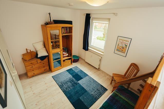 Ein Schlafzimmer verfügt über ein klassisches Doppelbett, das zweite Schlafzimmer über ein Etagenbett für drei Personen, die untere Liegefläche entspricht einem Doppelbett (1,40 m breit).Die Wohnung ist damit besonders für Familien mit bis zu drei Kindern geeignet.
