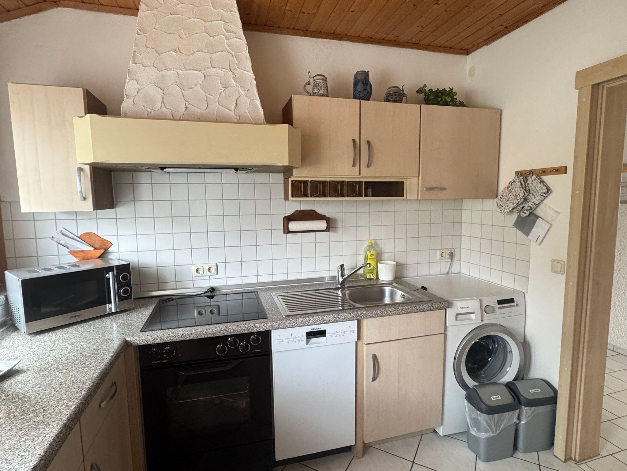 Das helle Wohnzimmer lädt mit einer kombinierten Sitz- und Essecke sowie Kabel-TV und Stereoanlage zum Entspannen ein. Die komplett ausgestattete Küche lässt keine Wünsche offen und ermöglicht eine komfortable Selbstversorgung. Das Badezimmer verfügt sowohl über eine Badewanne als auch eine Dusche und ein WC, zusätzlich steht eine Waschmaschine zur Verfügung.