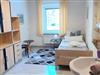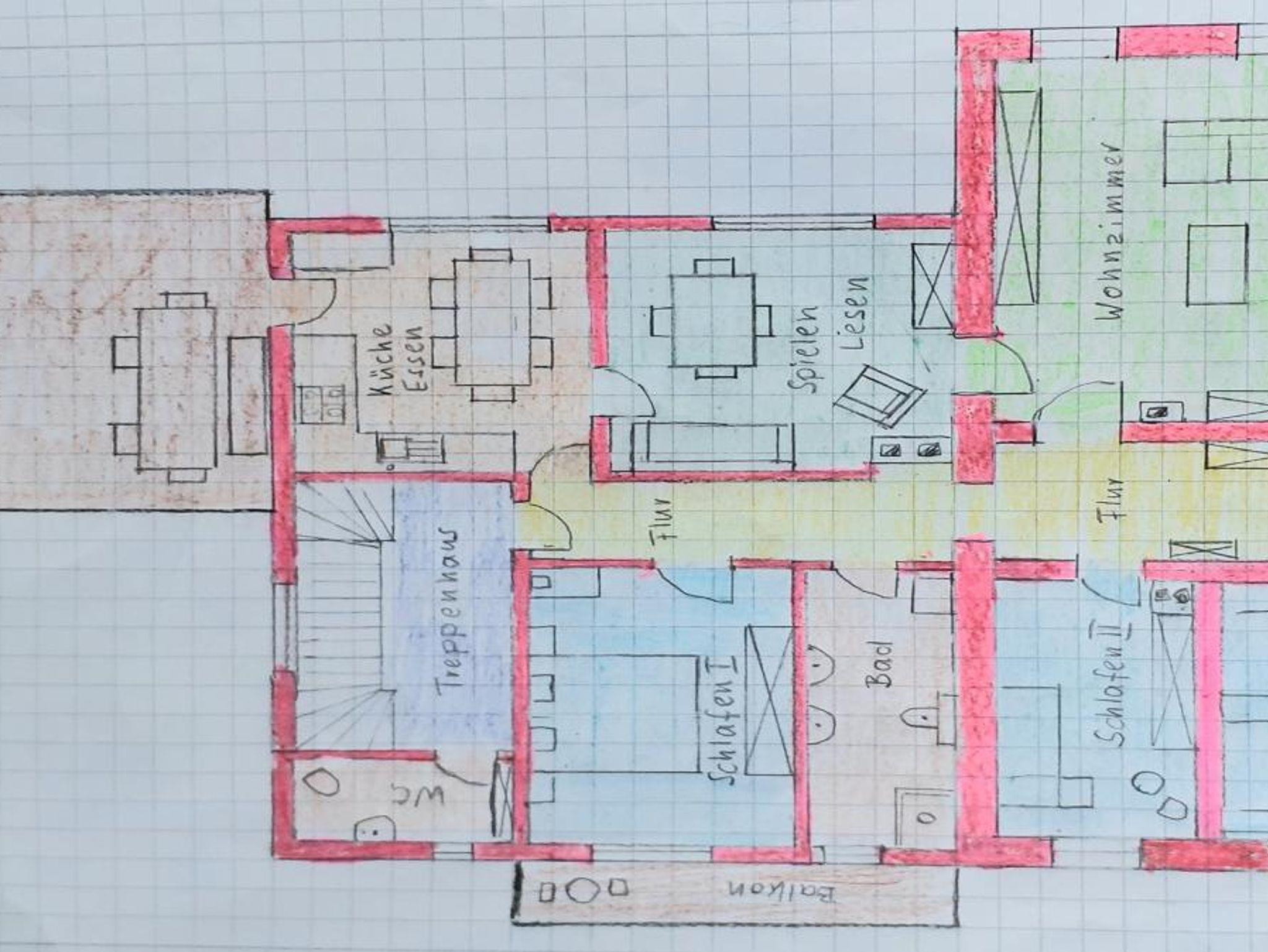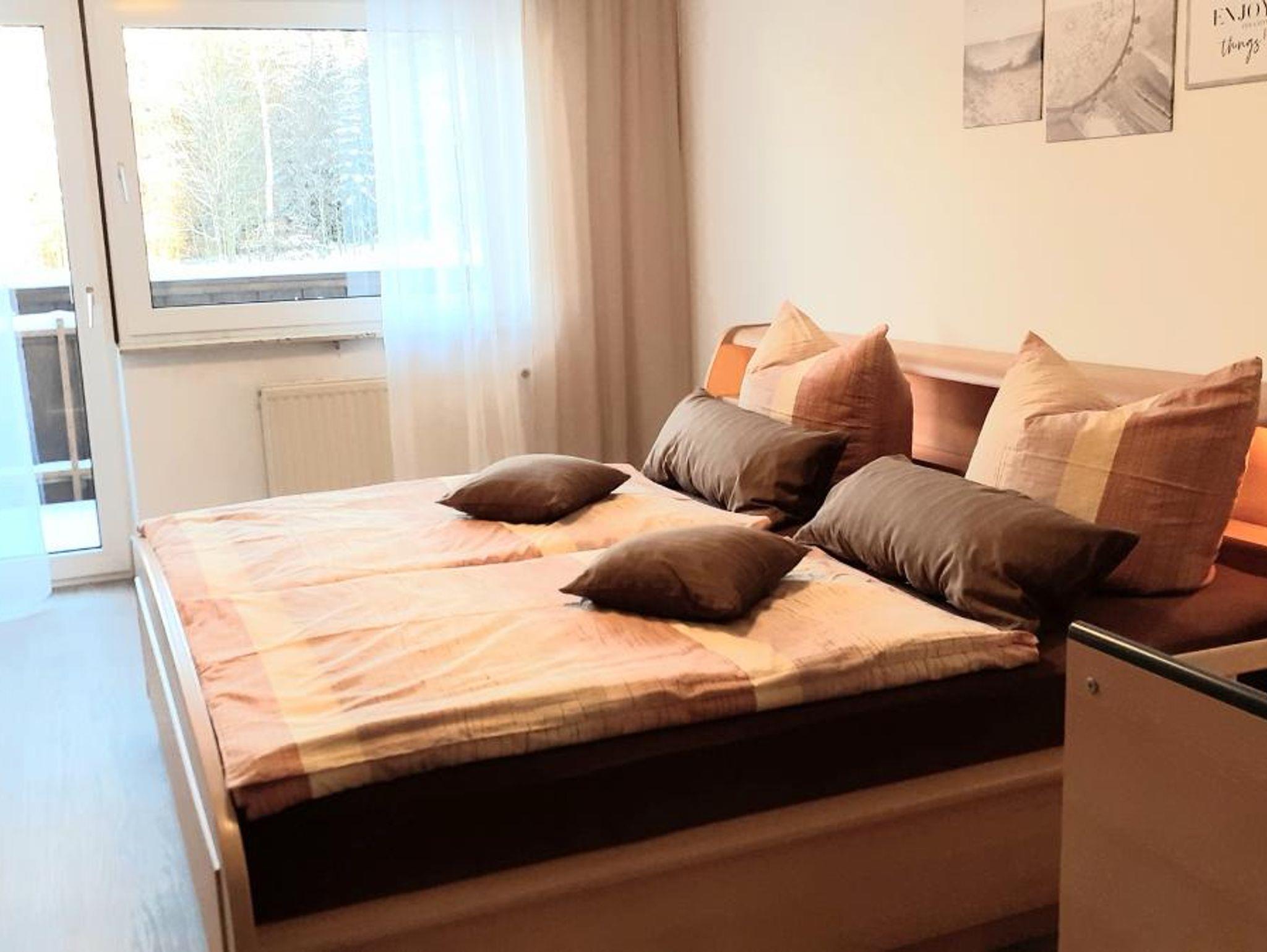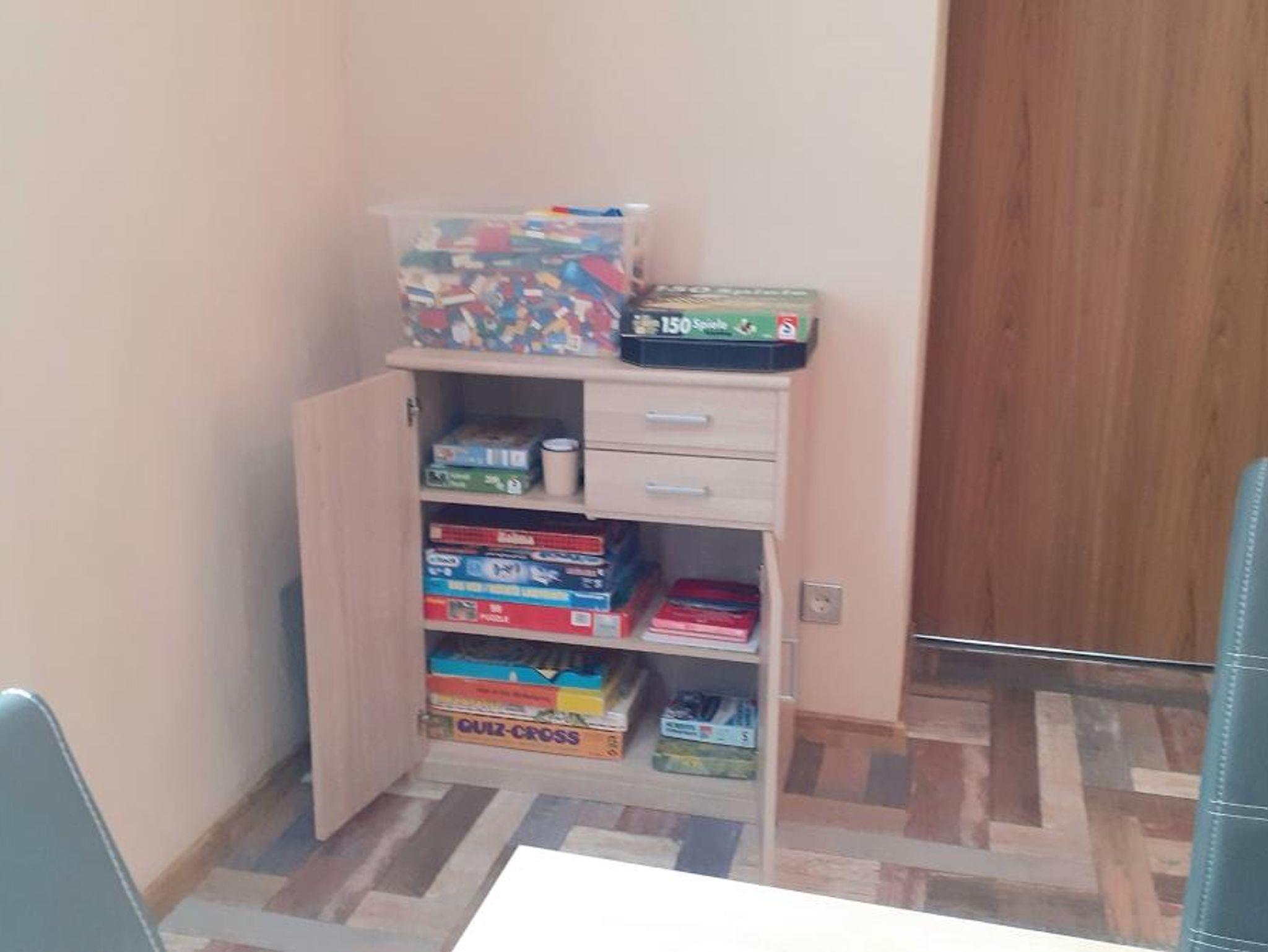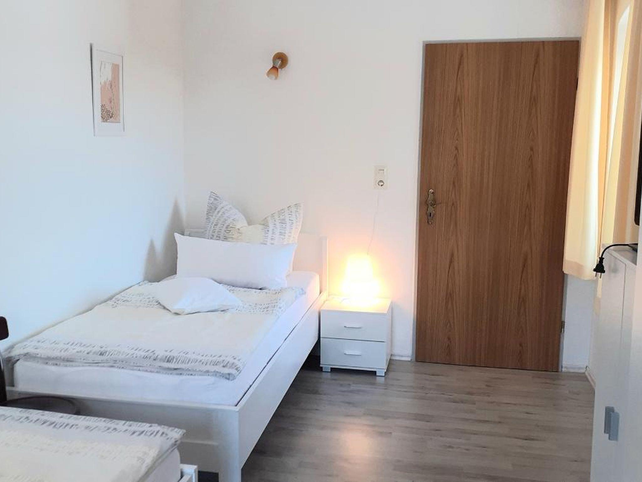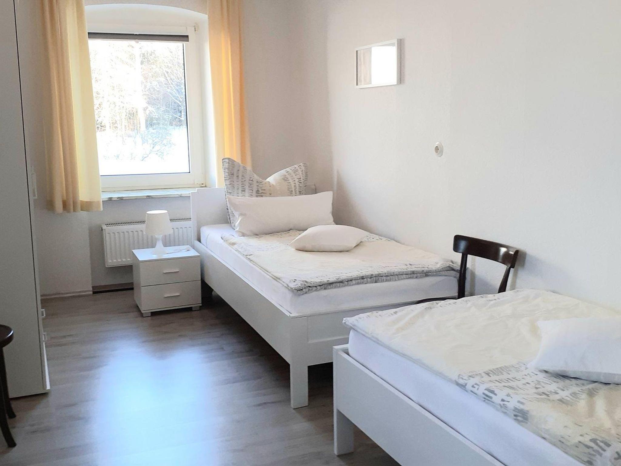 Die Wohnung hat drei Schlafzimmer wovon eines mit einem Doppelbett (180/200)und einem Kinderbett ausgestattet ist und davor ist ein kleiner Balkon mit Blick auf den Wald. Das zweite Schlafzimmer ist ein Einbettzimmer (90/200) mit Waschbecken. Das dritte Schlafzimmer ist mit hintereinander stehenden Betten (90/195 unten offen) ausgestattet die nicht zusammengestellt werden können. Zur Erstausstattung gehören Bettwäsche und Handtücher.
