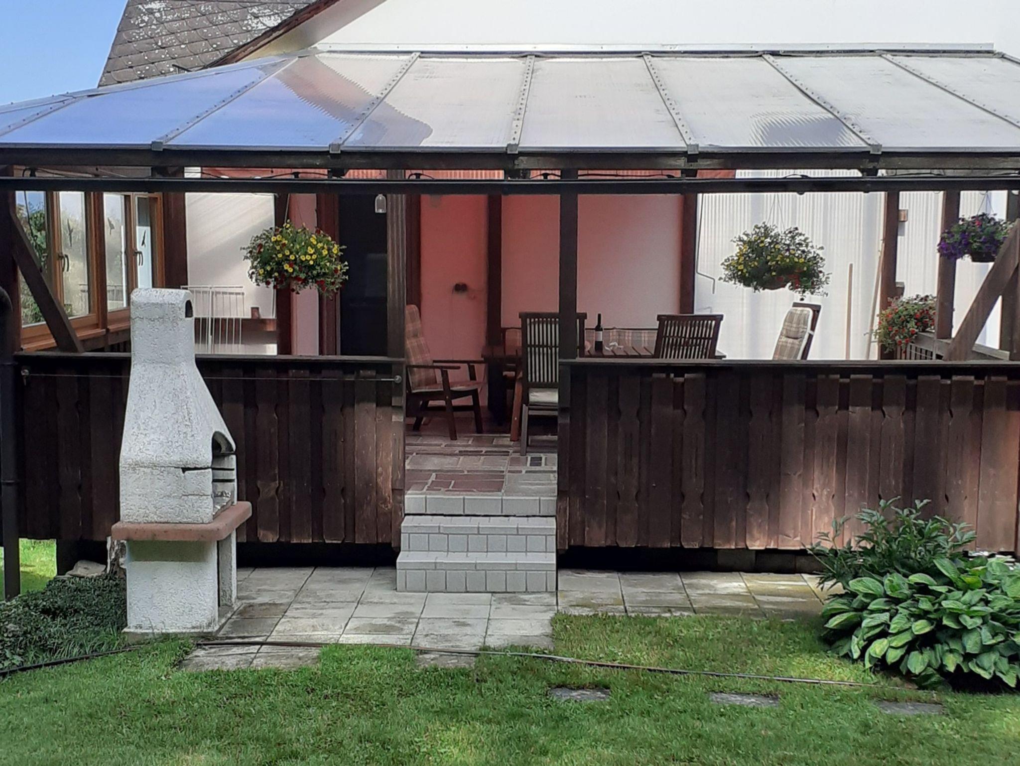 Die Wohnung(125qm) hat einen separaten Eingang. Sie besteht aus einer Küche mit Ausgang zur überdachten Terrasse(28 qm), einem Spiel-und Lesezimmer in welchem noch ein Bett zur Verfügung gestellt werden Kann. Das Wohnzimmer ist mit Eckcouch und Fernseher(SAT) ausgestattet.