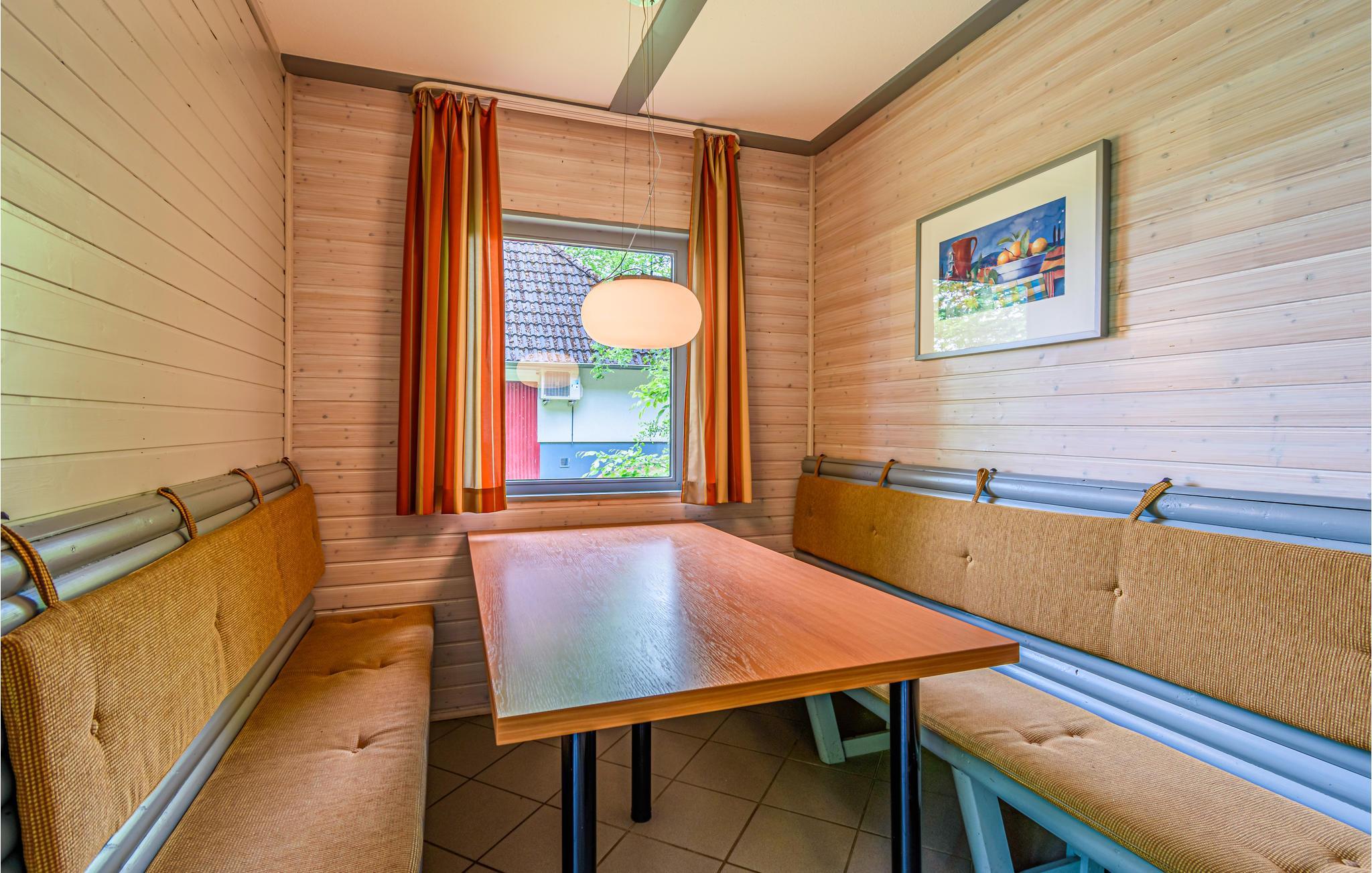 Die Ferienhausparzellen sind von eigenen Rasenflächen umgeben sowie durch Hecken und Bäume voneinander abgetrennt. Das Ferienhaus ist standardmäßig eingerichtet. Zur Freizeitgestaltung gibt es in der Nähe einen Trimm-dich-Pfad und Wanderwege. Entspannen Sie nach Ihren Unternehmungen in der Sauna oder im finnischen Holzbad.