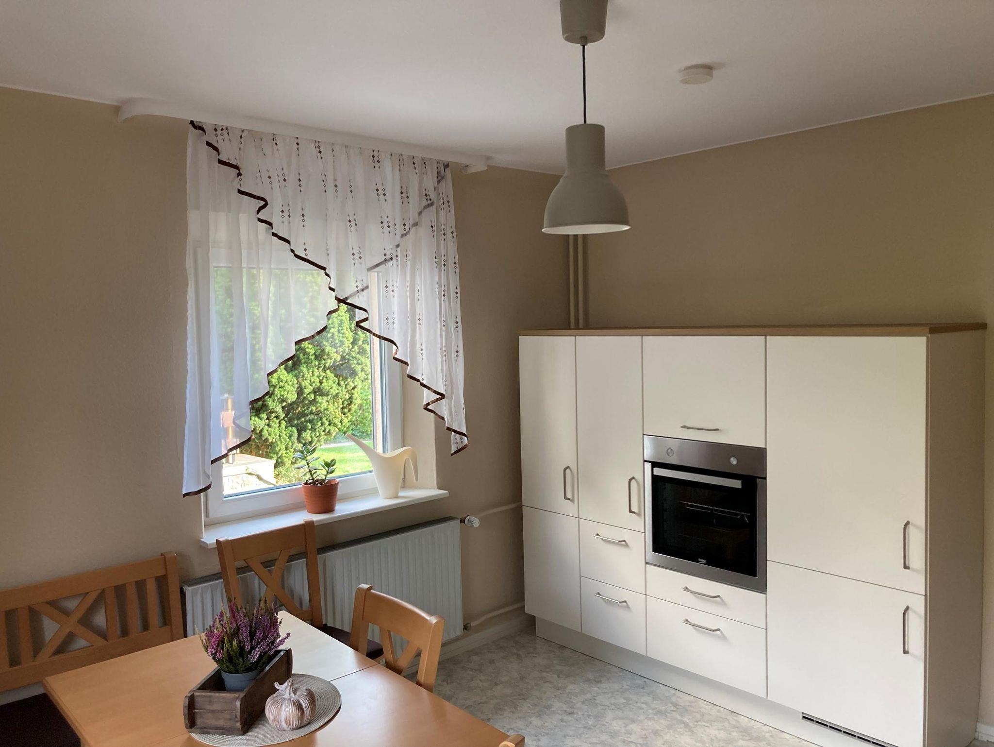 Die Wohnung im Erdgeschoss bietet auf 55 m² eine voll ausgestattete Einbauküche, Duschbad, helle Räume, sowie Balkon und Terrasse. 1 Schlafzimmer mit Doppelbett 180 x 200 cm und eine Schlafcouch 120 x 190 cm im Wohnzimmer.