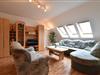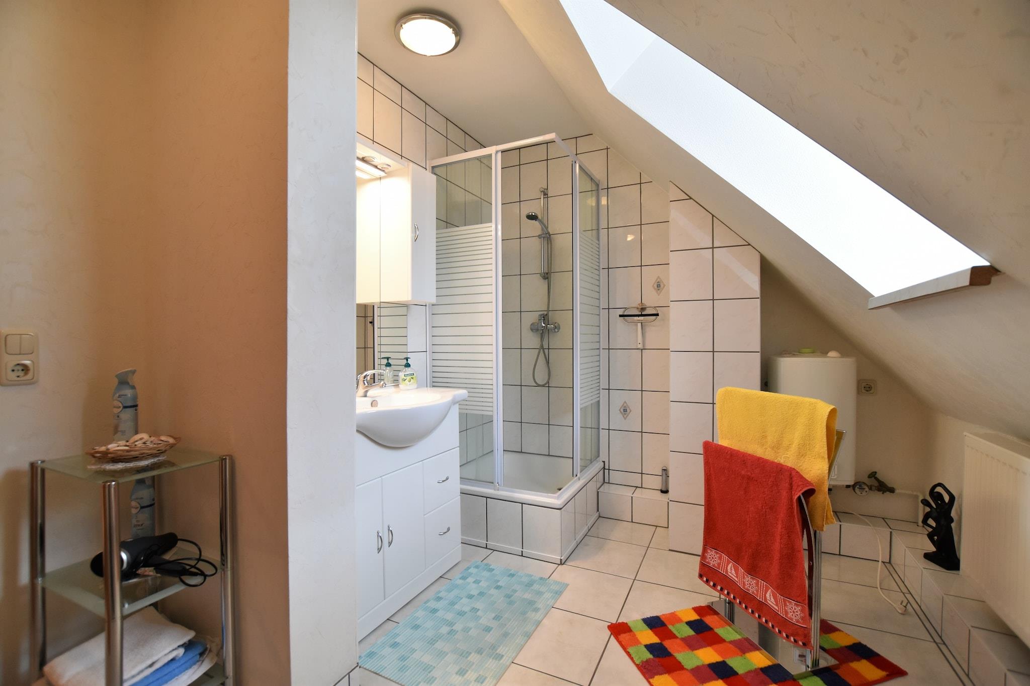 In der 1. Etage: (Wohnzimmer(TV(Flatscreen), Esstisch(4 Personen), Sitzecke, Radio, CD-Spieler), offene Küche(Wasserkocher, Toaster, Kochherd(4 Kochplatten, Ceranfeld), Kaffeemaschine, Backofen, Mikrowelle, Kühlschrank(+ Gefrierfach)), Schlafzimmer(Doppelbett king size(180 x 200 cm)), Badezimmer(Dusche, Toilette, Föhn)) Carport, Terrasse, Garten, Fahrradabstellraum, Gartenmöbel, Grill
