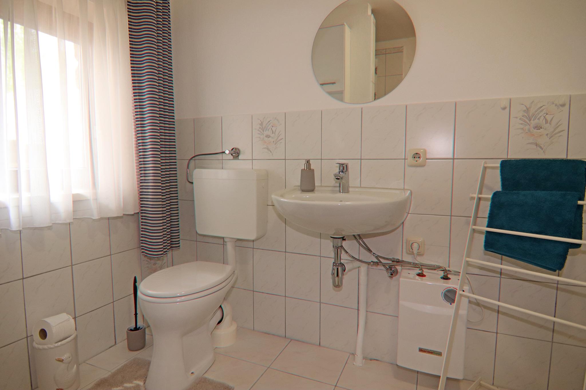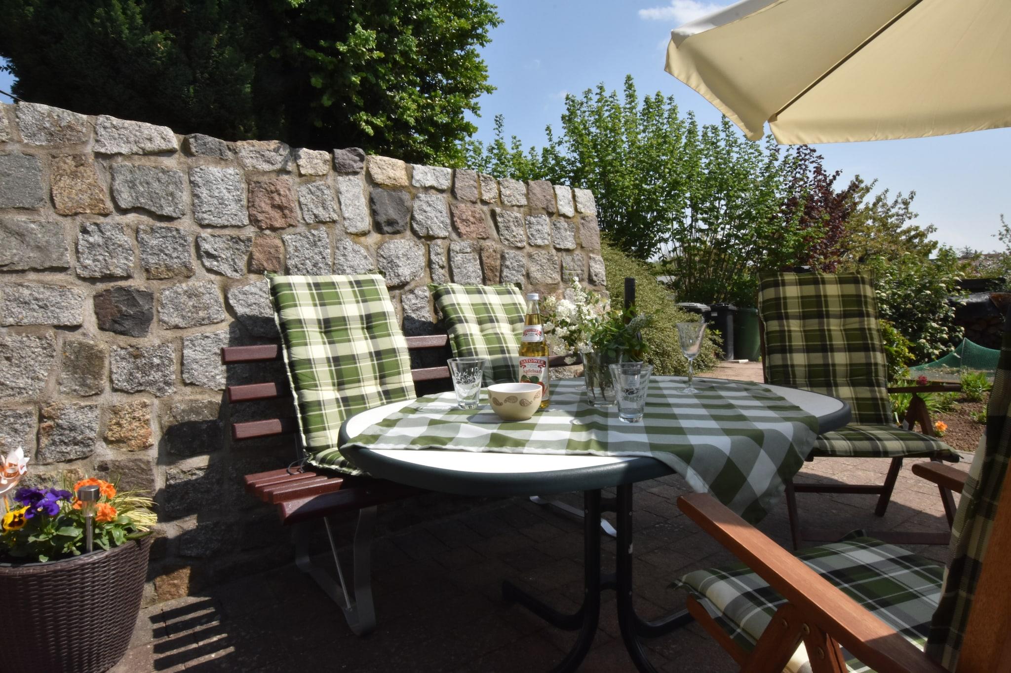 Souterrain: (Eingang(von außen erreichbar), Küche(Wasserkocher, Toaster, Kochherd(4 Kochplatten, elektrisch), Kaffeemaschine, Backofen, Kühlschrank(+ Gefrierfach)), Wohn/Esszimmer(TV(Satellit), Esstisch(4 Personen), Sitzecke), Schlafzimmer(Doppelbett), Schlafzimmer(Französisches Bett, TV(Satellit)), Badezimmer(Dusche, Waschbecken, Toilette), Flur, Heizung, Kinderbett, Hochstuhl) Terrasse, Garten(Gemeinschaftliche Nutzung mit dem Eigentümer), Fahrradabstellraum, Gartenmöbel, Grill, Parkplatz, Sonnenschirm