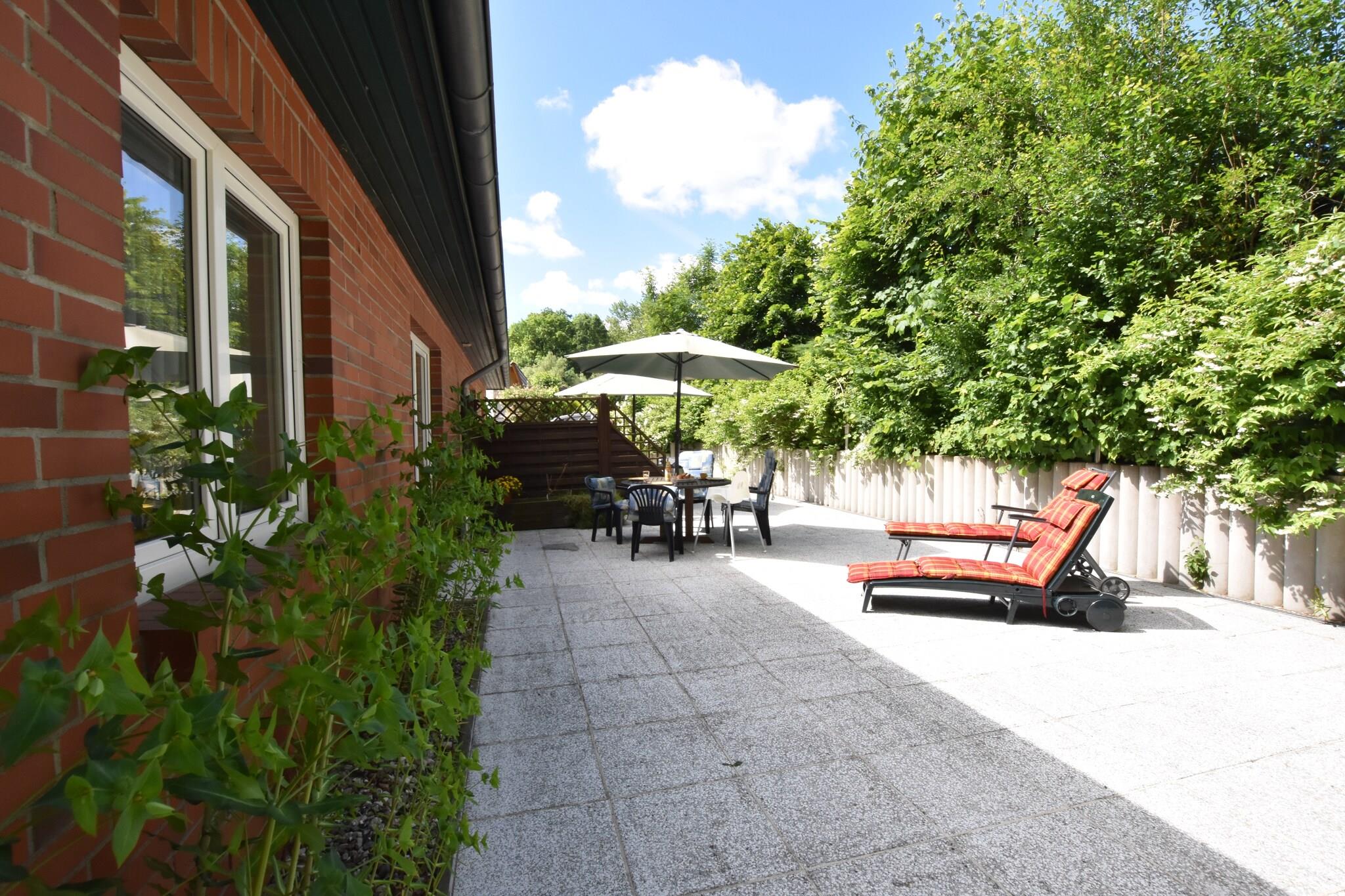 Parterre: (Eingangshalle, offene Küche(Esstisch(4 Personen), Wasserkocher, Toaster, Kochherd, Kaffeemaschine, Backofen, Kühlschrank), Wohn-/Schlafzimmer(Doppelschlafcouch, TV, Sitzecke), Schlafzimmer(Doppelbett), Badezimmer(Dusche, Waschbecken, Toilette), Radio, CD-Spieler, Heizung(Fußbodenheizung)) Sauna, Terrasse, Garten, Gartenmöbel(4 Personen), Liegen, Grill, Parkplatz, Sonnenschirm