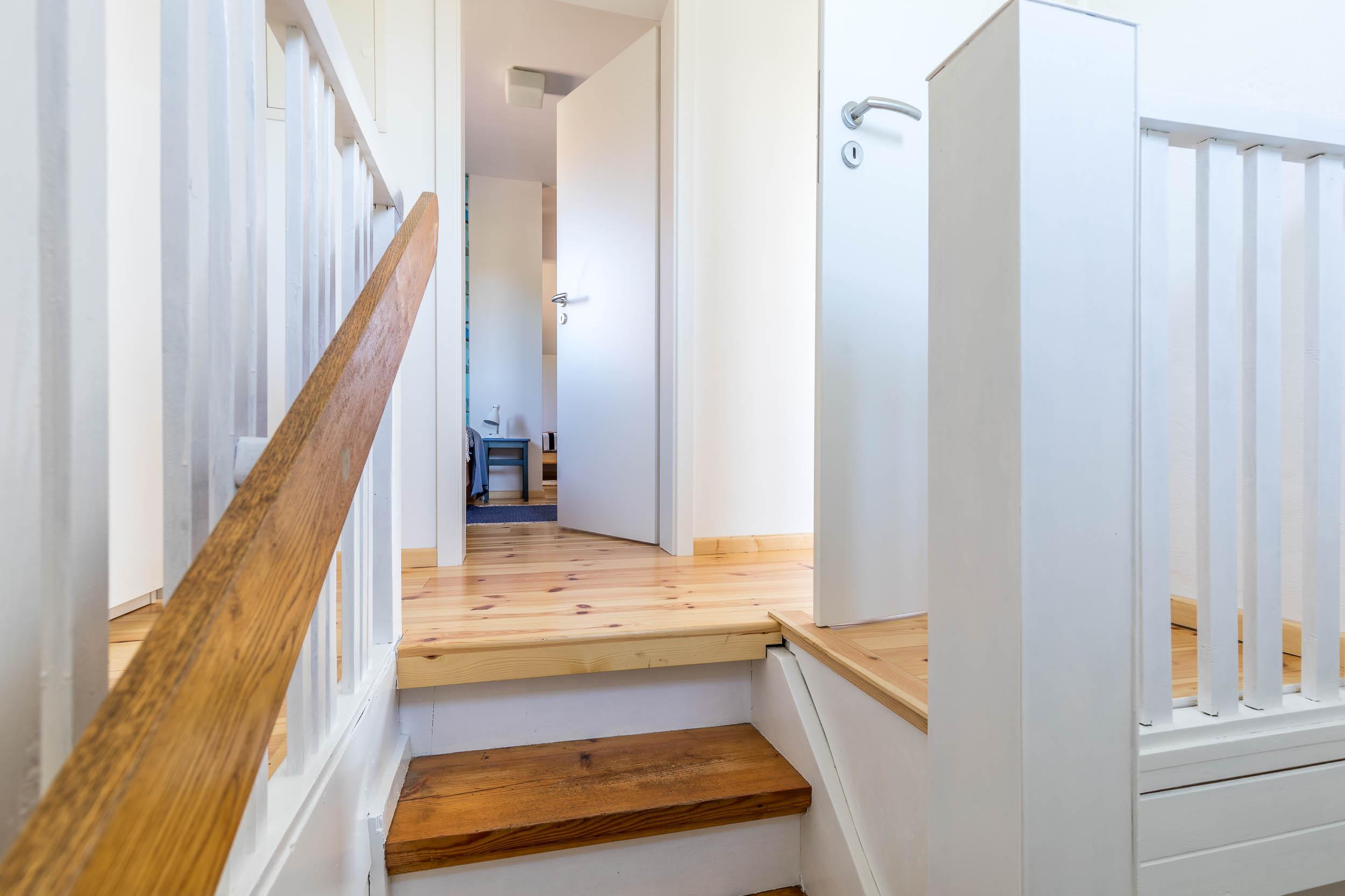 Das Haus bietet ca. 80 qm Wohnfläche auf zwei Etagen, sowie einen großen Balkon zur Südseite und zwei Terrassen.