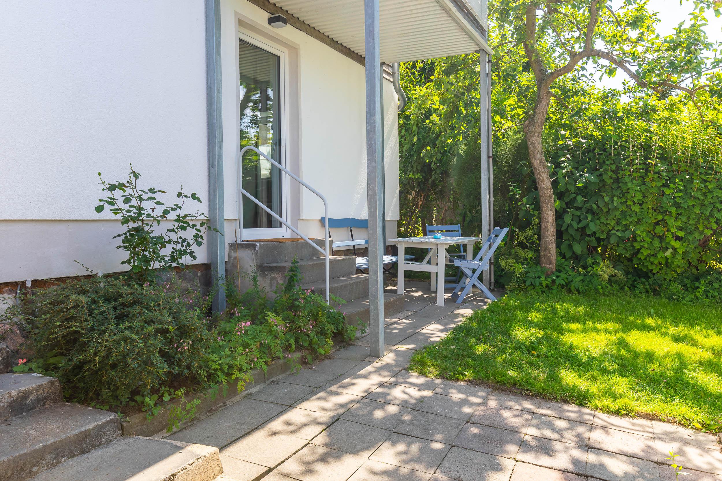 Einkaufsmöglichkeit, auch ein Bäcker für die Frühstücksbrötchen, gibt es direkt um die Ecke. Es kann das Wegerecht über das Nachbargrundstück genutzt werden für den direkten Zugang auf die Straße. Als Hauptzugang zum Ferienhaus empfehlen wir den Zugang über den Garten.