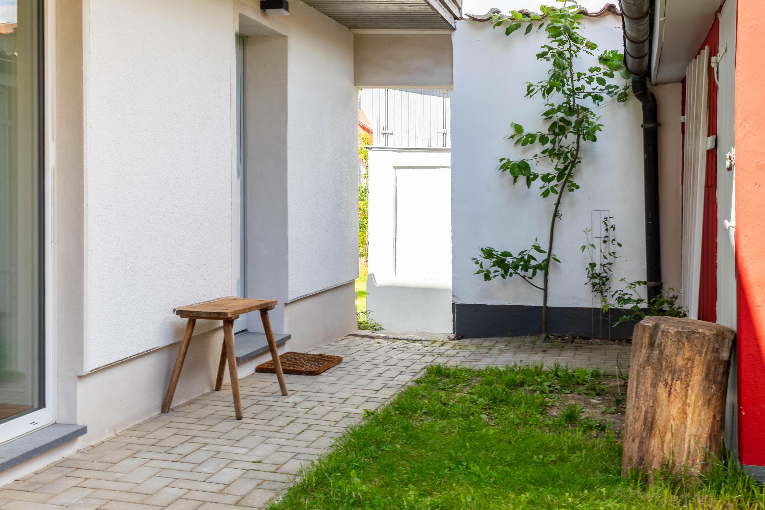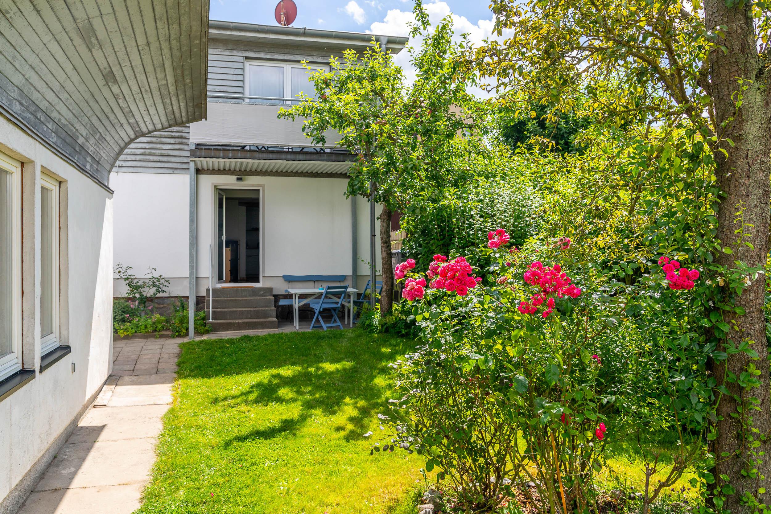 Ein Kamin sorgt für Gemütlichkeit, ein direkter Zugang führt auf eine kleine, überdachte Terrasse und in den großen Garten zur alleinigen Nutzung. Früchte, Kräuter und Blumen für den Eigenbedarf inklusive….