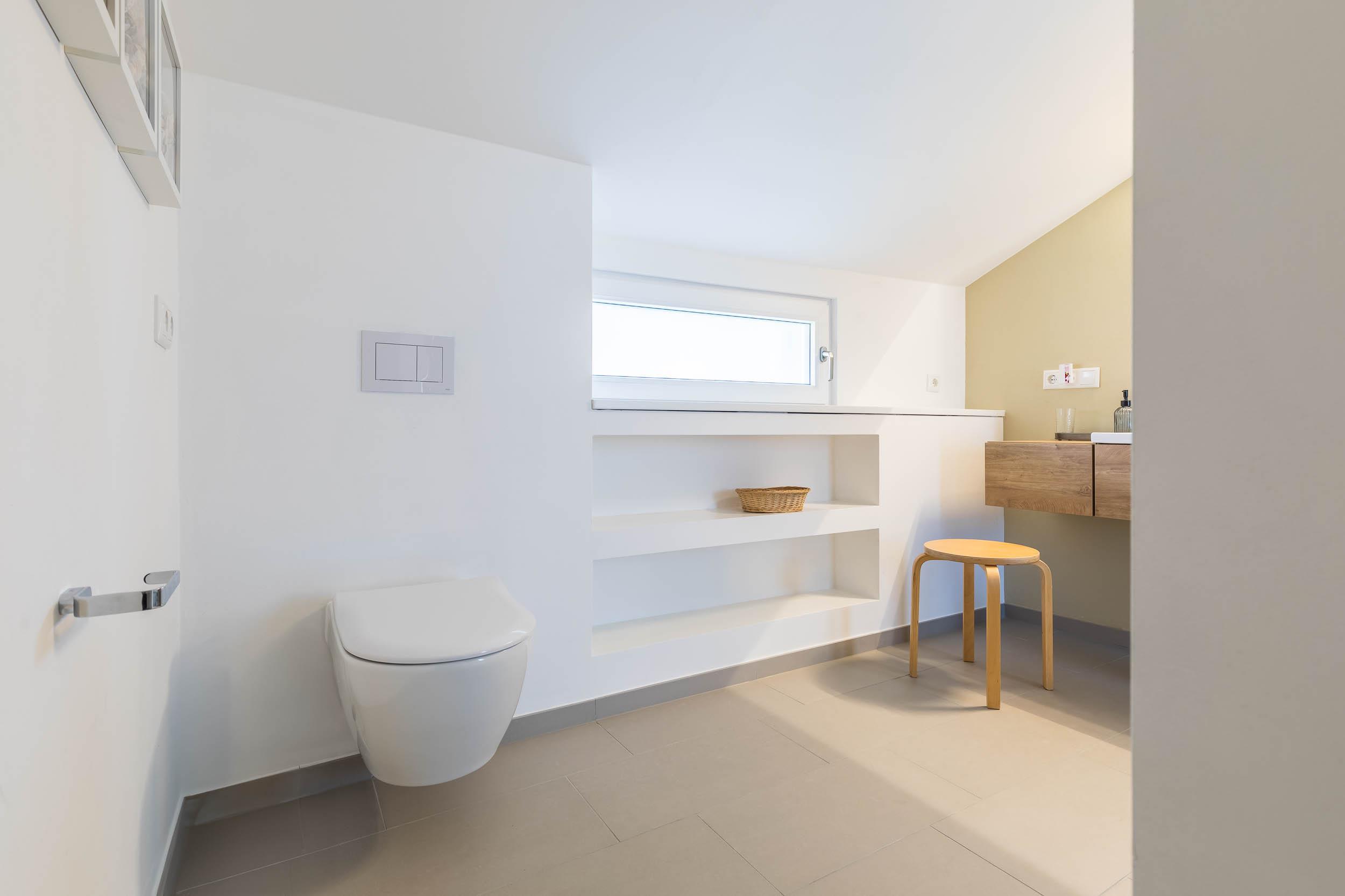 Naturmaterialien und eine Fußbodenheizung sorgen für ein angenehmes Raumklima im Haus.
