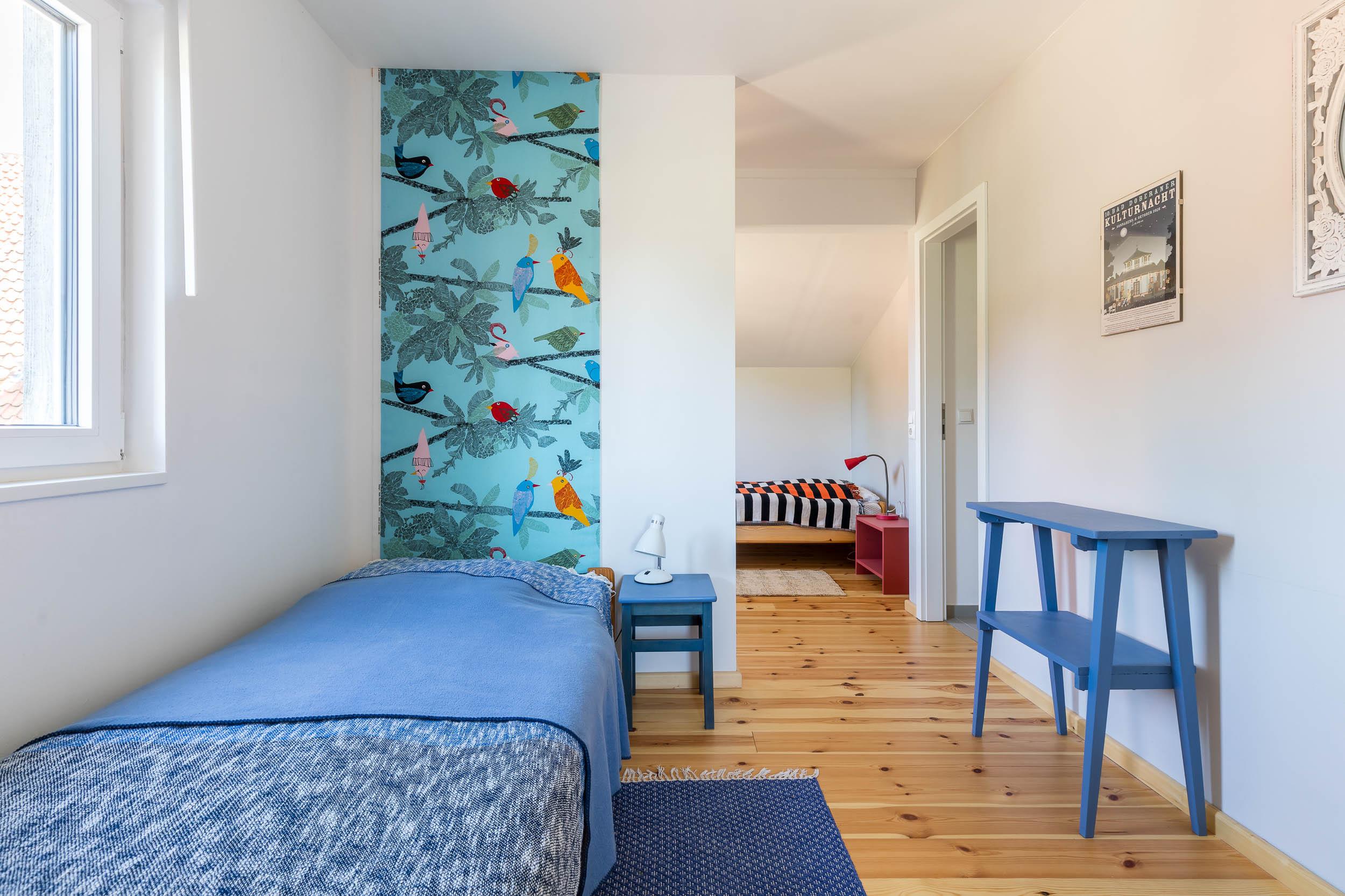 Das zweite Schlafzimmern besteht aus zwei durch eine Trennwand geteilte Schlafbereiche mit Einzelbetten (90 x 190 cm). Jeweils ein Fenster und Ablagemöglichkeiten vorhanden. In beiden Schlafzimmern sorgen Verdunkelungsrollos und die ruhige Lage für erholsamen Schlaf.