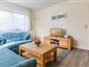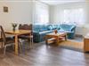 Der Wohnbereich ist mit einer bequemen Couch, SAT-TV und Radio ausgestattet. An der separaten Essecke können Sie gemeinsam speisen und Zeit verbringen.
