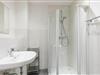 Im hell gefliesten Badezimmer finden Sie eine Dusche und WC.