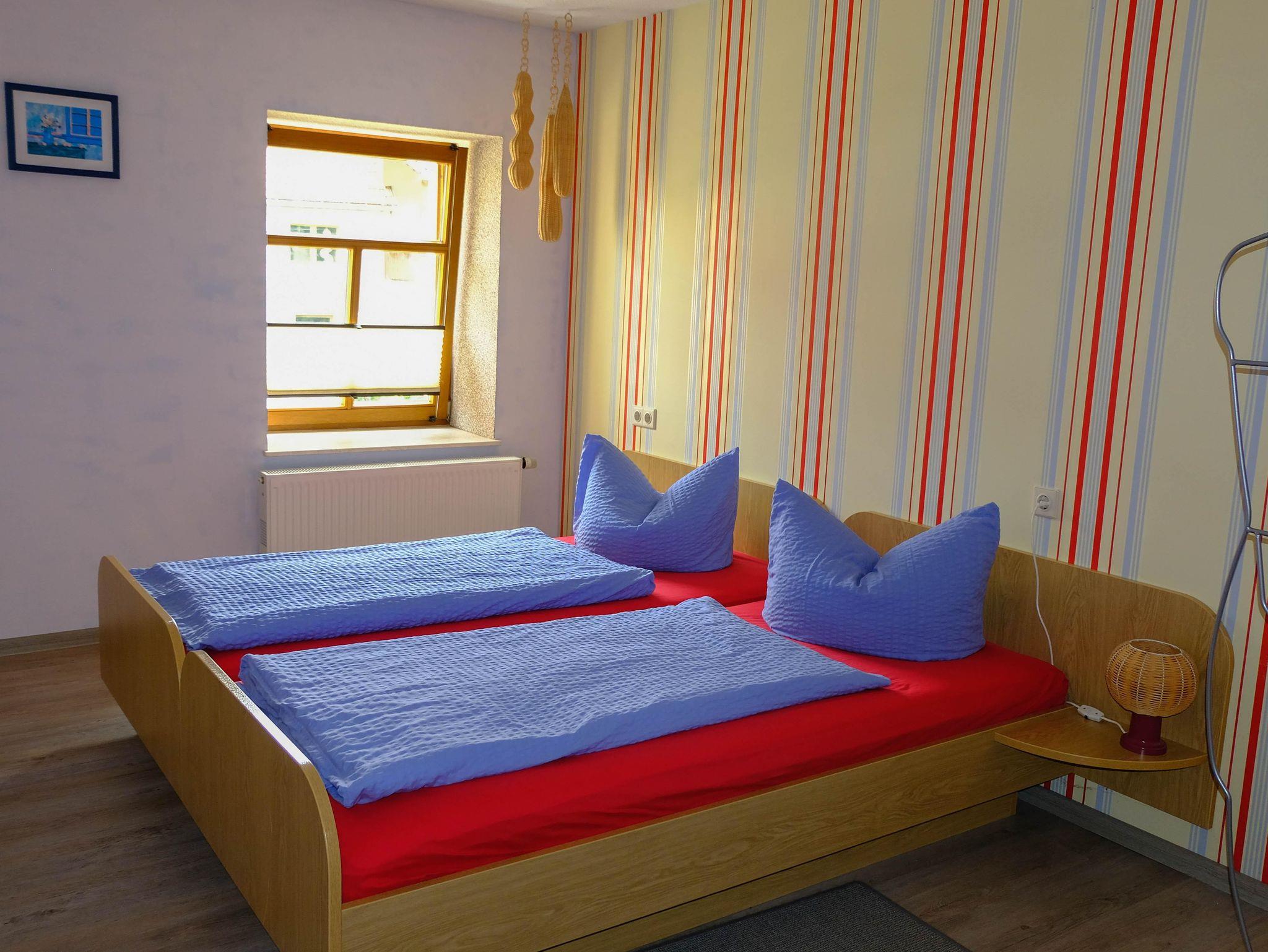 Unsere ebenerdige, behindertenfreundliche Ferienwohnung 1 hat ca. 55 qm und besteht aus einem Schlafzimmer, einem Wohnraum, einem Bad und einer Terrasse.