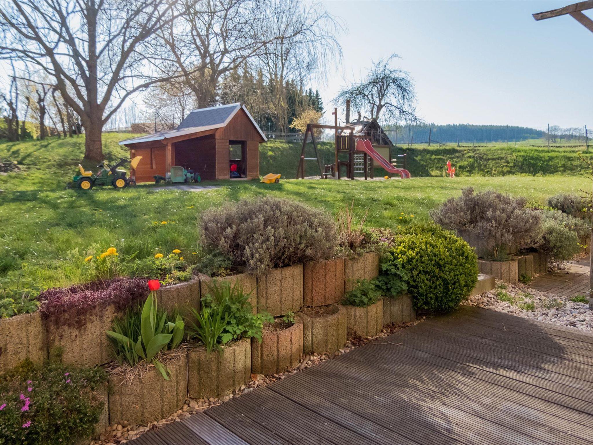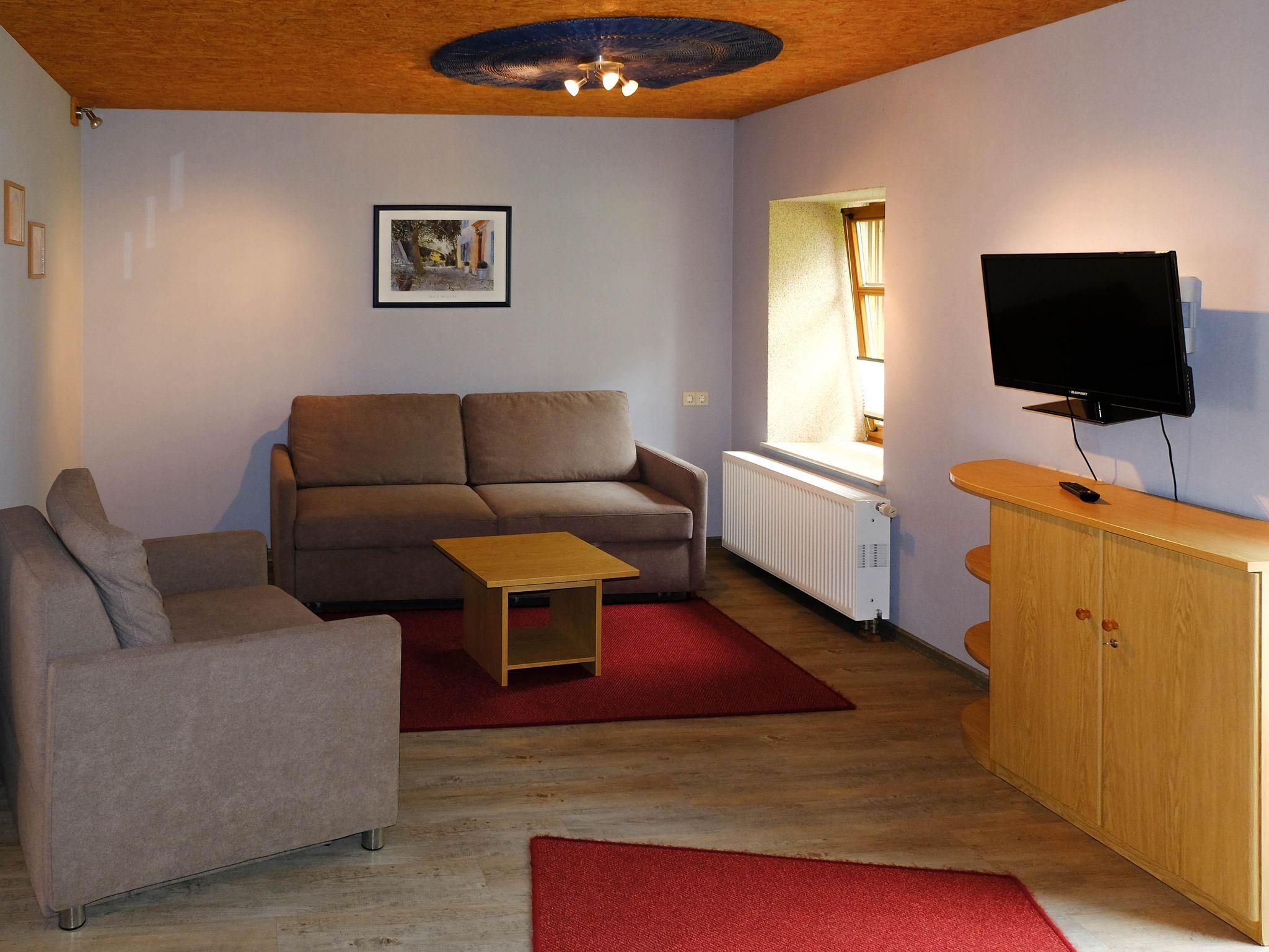 Unsere drei idyllisch, am Ortsrand gelegenen Ferienwohnungen, auf einem ehemaligen Bauernhof, haben je eine Terrasse auf der man sich, umgeben von Grün, gut erholen kann. Zum Entspannen lädt außerdem eine Sauna ein. Auf dem hauseigenen Spielplatz können sich Kinder an der frischen Luft bewegen.