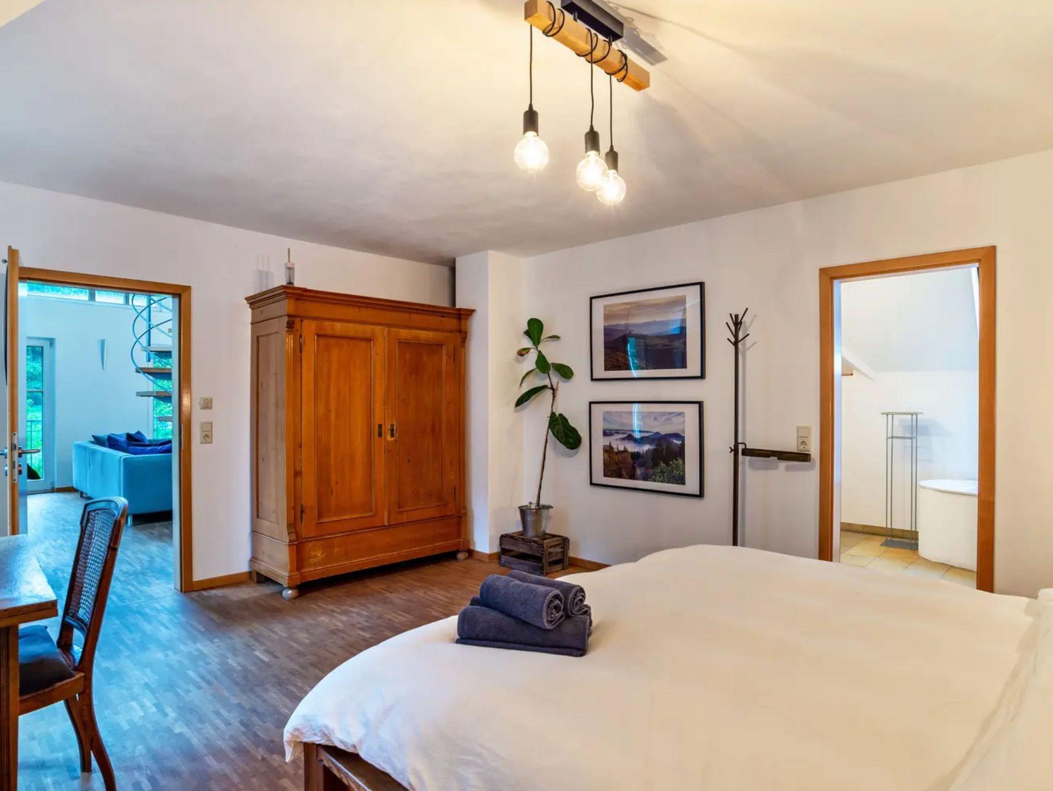 3. großes geräumiges Zimmer „No. III Ensuite“ mit Kingsize-Bett und direktem Zugang zum Badezimmer Mit Blick zum Bach 25m2