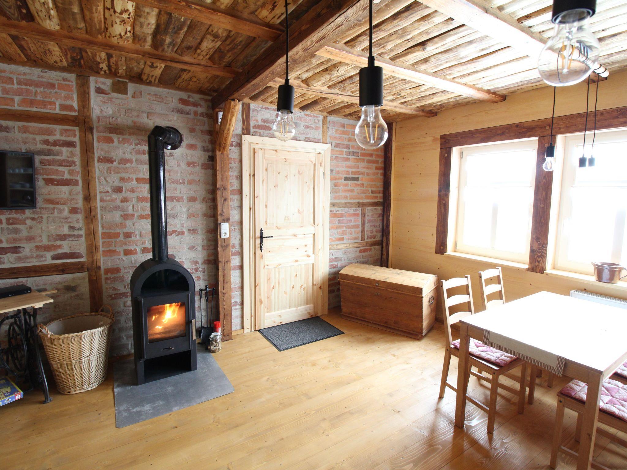 Wir haben dieses Gebäude selbst in vielen Stunden komplett saniert und zu einem gemütlichen Feriendomizil umgebaut. Die vorwiegend verwendeten Naturmaterialien (Holz, Naturstein) verleihen dem Haus eine einzigartige Gemütlichkeit. Es wurde jedoch nicht auf den modernen Standard verzichtet. Die Ferienhaushälfte befindet sich in der linken Seite des Hauses. Sie ist komfortabel ausgestattet und bietet 4 Personen ausreichend Platz. Es verfügt über 1 Bad, 1 Küche, 1 Wohn,- Esszimmer, 1 abgeschlossenes Schlafzimmer und 1 offenes Schlafzimmer. Am Kaminfeuer können die Gäste ihren Urlaub genießen. Auch im Außenbereich kann man auf der großzügigen Terrasse seinen Urlaub genießen. Kostenfreie Parklätze stehen an der Unterkunft zur Verfügung.