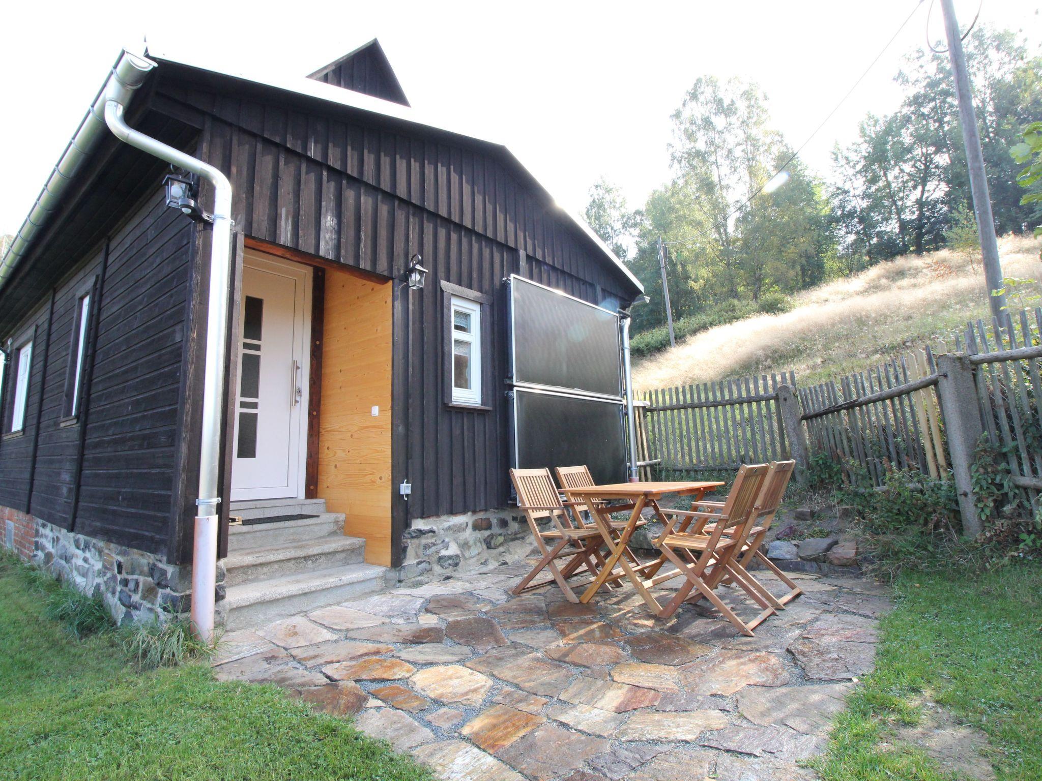Wir haben dieses Gebäude selbst in vielen Stunden komplett saniert und zu einem gemütlichen Feriendomizil umgebaut. Die vorwiegend verwendeten Naturmaterialien (Holz, Naturstein) verleihen dem Haus eine einzigartige Gemütlichkeit. Es wurde jedoch nicht auf den modernen Standard verzichtet. Die Ferienhaushälfte befindet sich in der rechten Seite des Hauses. Sie ist komfortabel ausgestattet und bietet 4 Personen ausreichend Platz. Es verfügt über 1 Bad, 1 Küche, 1 Wohn,- Esszimmer, 1 abgeschlossenes Schlafzimmer mit einem Doppelbett und einem Einzelbett. Ein weiteres Einzelbett steht in dem offenen Schlafbereich, wenn man die Treppe hoch kommt. Am Kaminfeuer können die Gäste ihren Urlaub genießen. Auch im Außenbereich kann man auf der großzügigen Terrasse seinen Urlaub genießen. Kostenfreie Parklätze stehen an der Unterkunft zur Verfügung.