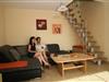 Der Wohnraum mit seinem großen Panoramafenster befindet sich im Erdgeschoß und ist mit einem LCD-Flachbildfernseher, DVD-Player, HiFi-Anlage, Telefon, einer gemütlichen Doppelcouch (ausziehbar) und Fußbodenheizung ausgestattet. Die Lamellenjalousie am Panoramafenster ist elektrisch individuell einstellbar. Weiter befindet sich im EG ein 2. Schlafzimmer mit LCD-Flachbildfernseher sowie der Vorraum mit Kleider- und Schuhtrockner. Über die Wendeltreppe gelangen Sie in den oberen Bereich des Ferienhauses. Das Esszimmer bietet Platz für 4 Personen, Kühl-, Gefriereinheit. Die Küche hält für Sie Kaffeemaschine, Mikrowelle, Cerankochfeld, Geschirrspüler, Toaster und ausreichend Geschirr bereit. Das Bad hat natürlich WC, einen beheizbaren Handtuchhalter und eine Dusche. Von hier aus kommen Sie auch auf den großen Balkon, ausgestattet mit Gartenmöbeln und Markise.