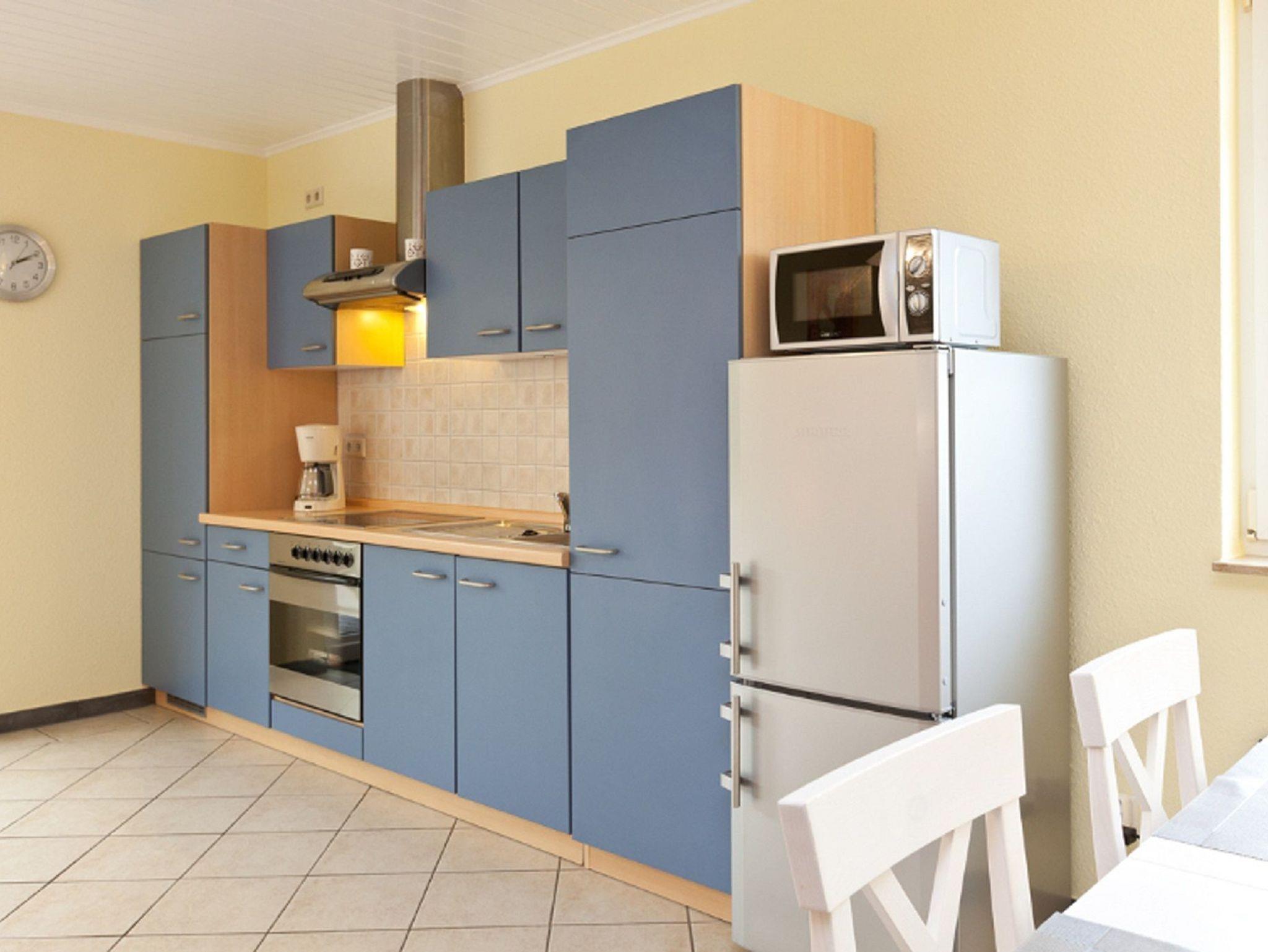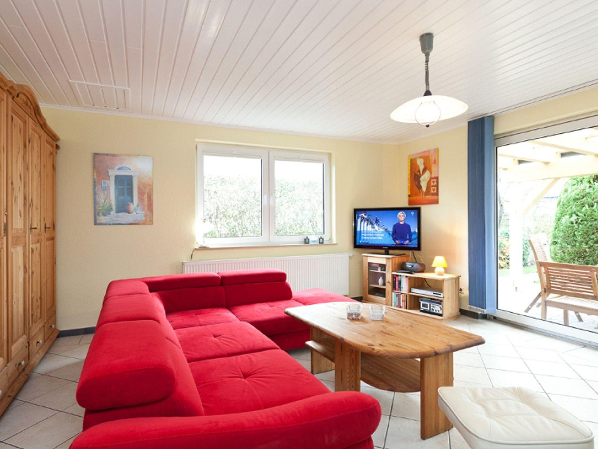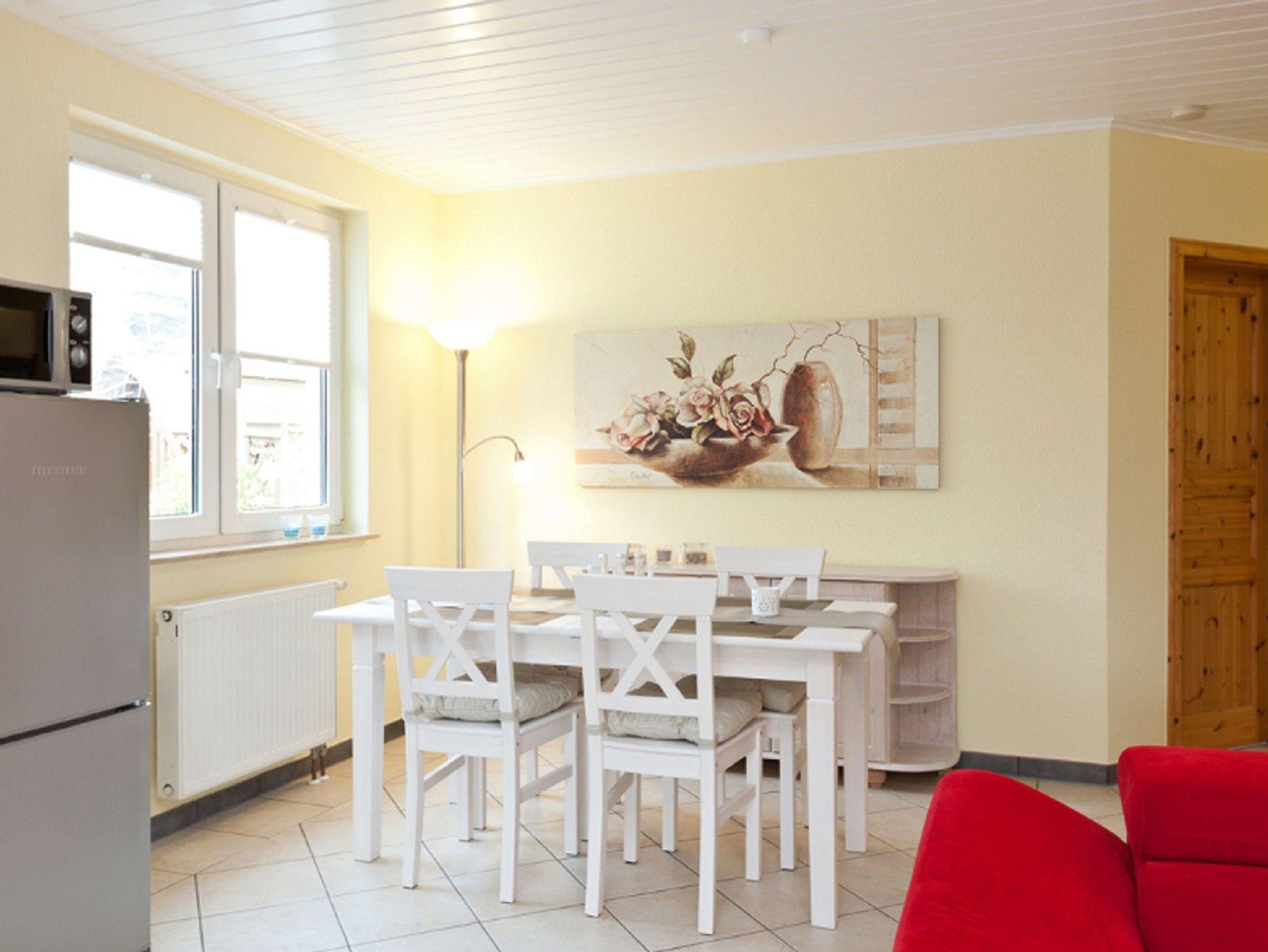 Das Ferienhaus verfügt über WLAN, einen Wohnungsvorflur mit Garderobe, einen Küchenbereich mit Herd, Backofen, Kühlschrank - komplett ausgestattet, Essplatz sowie einen großzügigen, hellen Wohnbereich mit Schlafsofa.