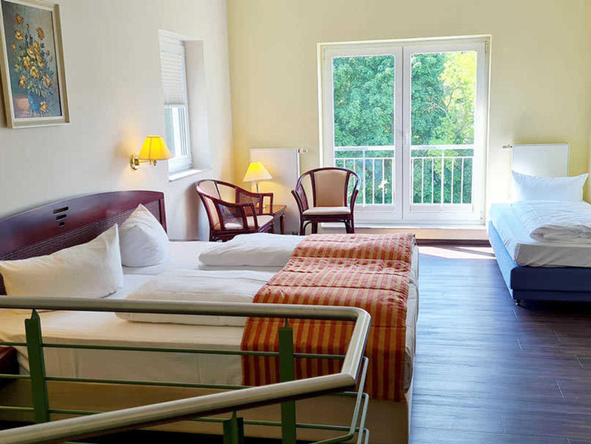 Lassen Sie sich im Schloss zwischen Türmen, Zinnen, Giebeln und den zahllosen Erkern vom Charme der Vergangenheit verzaubern oder genießen Sie mediterranes Urlaubsgefühl in der Orangerie mit ihren großzügigen Glasfassaden und warmen Akzenten. Entspannen Sie im MüritzSPA inklusive Indoor-Pool mit Seeblick, Saunen und Liegewiese . Das Schloss verfügt über Zimmer im Hauptgebäude (ohne Tiere) und in der Orangerie (Tiere teilweise), teilweise mit Balkon oder Terrasse. Alle angegebenen Preise sind ab-Preise.