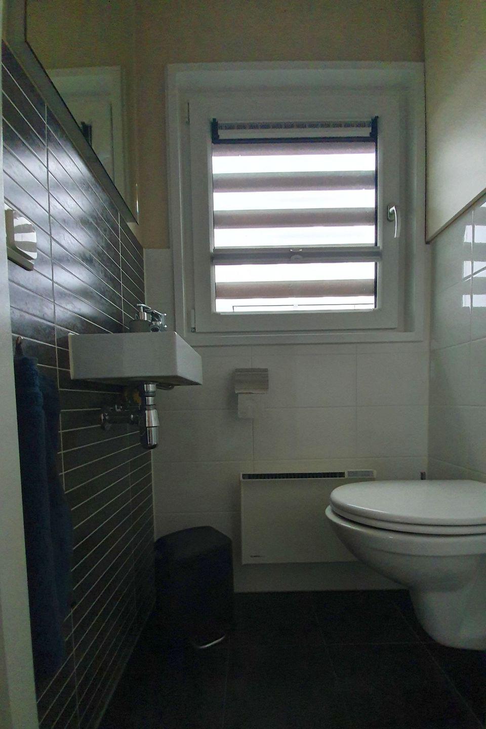 Der separate WC-Raum ist ebenfalls stilvoll eingerichtet und bietet zusätzliche Privatsphäre – perfekt für Familien oder befreundete Paare.