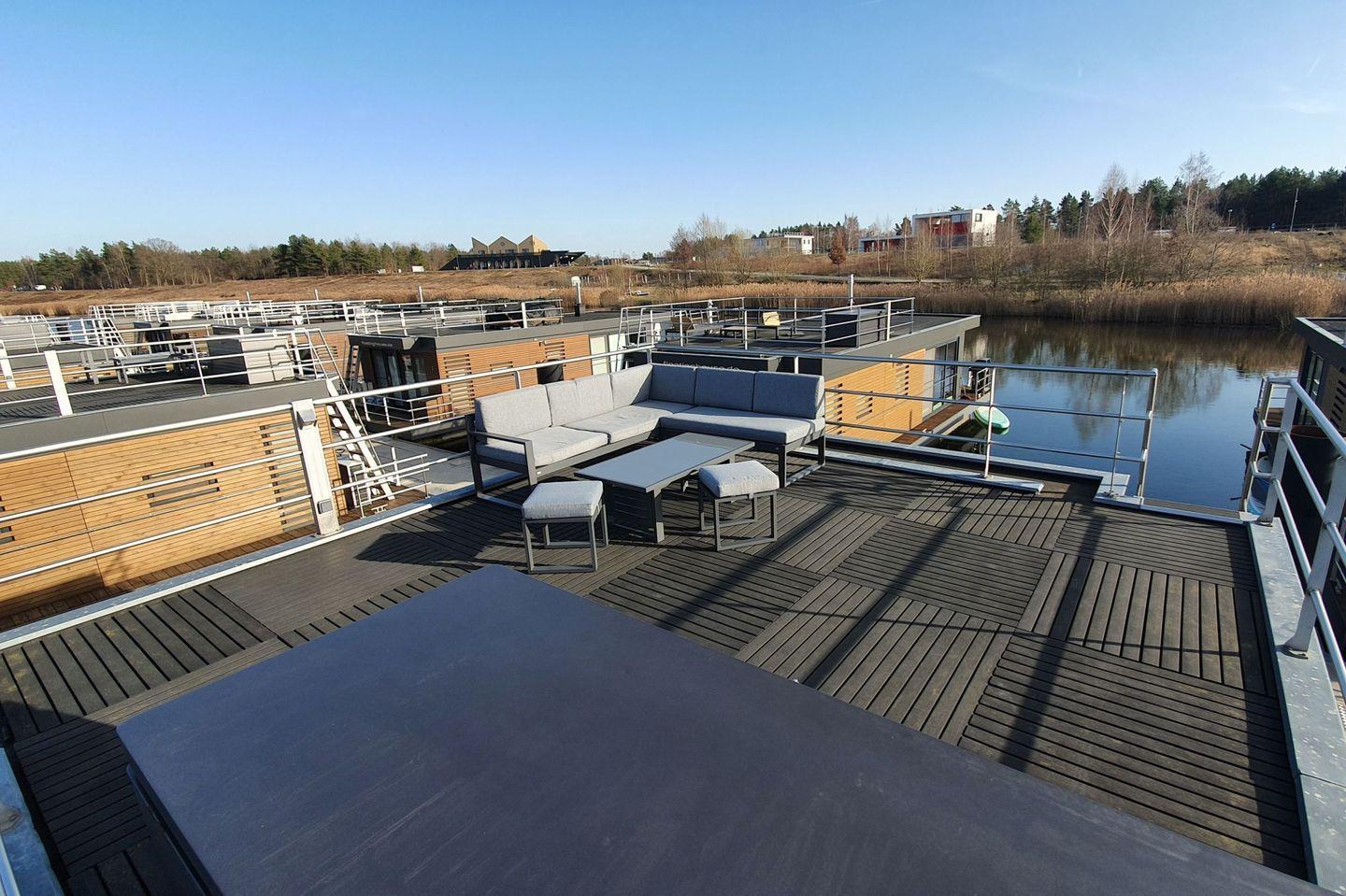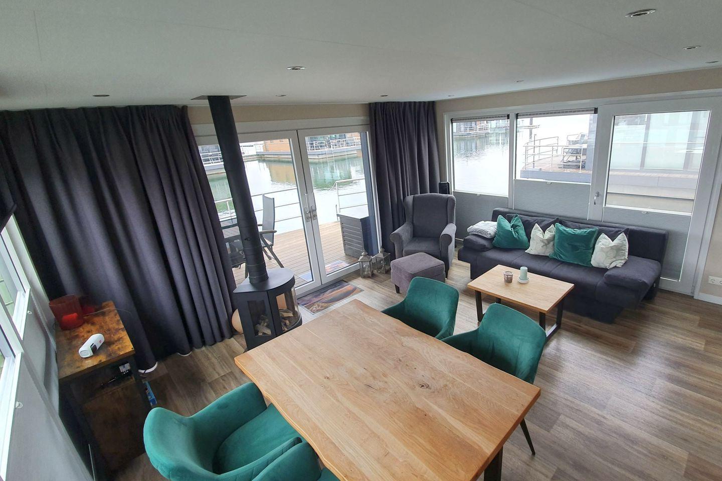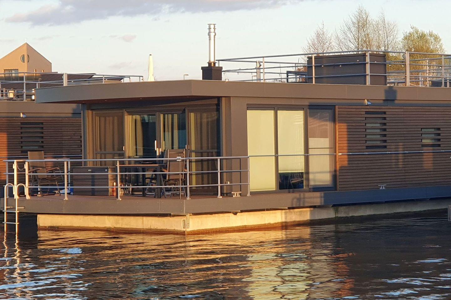 Floatinghouse auf dem Wasser mit Terrasse & Kamin – 4 Personen