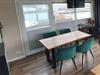 Hier erwartet Sie eine gemütliche Couch mit Couchtisch sowie ein Esstisch mit vier Stühlen. Außerdem stehen Ihnen ein Radio mit Bluetooth-Anbindung für Ihre eigene Musik, ein TV und eine sanfte Ambientebeleuchtung zur Verfügung, die am Abend eine warme Stimmung zaubert. Ein Kaminofen sorgt an kühleren Tagen für ein wohliges Gefühl, während ein Klimagerät sowohl zum Heizen als auch zum Kühlen dient. Für zusätzlichen Komfort sorgen Sonnen- und Sichtschutz, Insektenschutzgitter sowie seitliche Plissees, die einen entspannten Aufenthalt zu jeder Jahreszeit ermöglichen.
