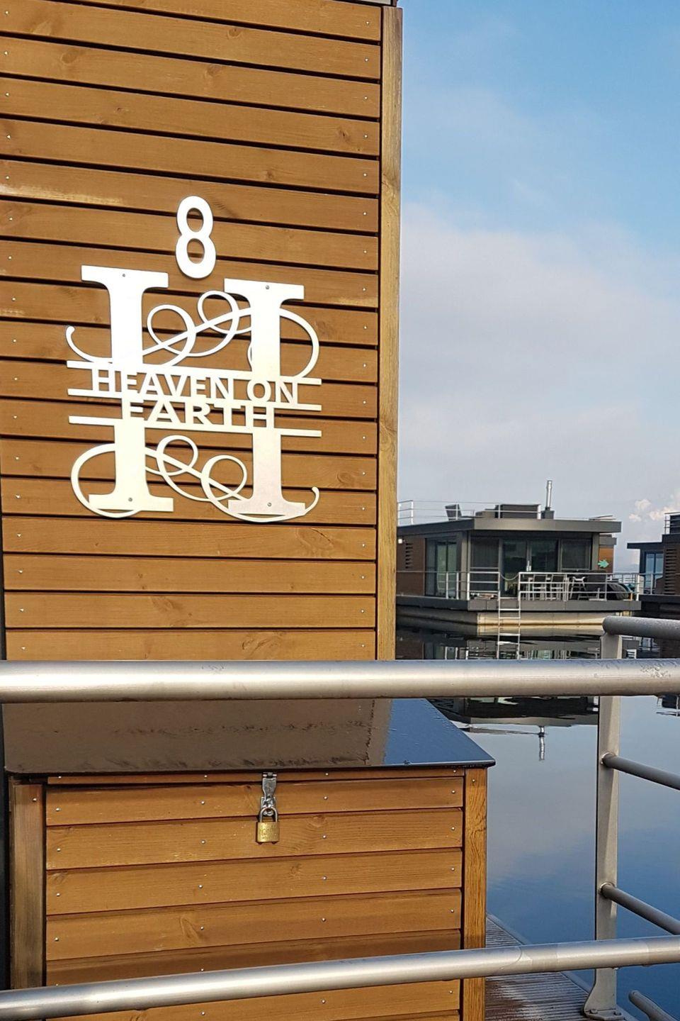 Floatinghouse Heaven on Earth: freistehendes, familienfreundliches Nichtraucher-Floatinghouse auf dem Wasser mit Seeblick und Landschaftsblick. 3 Zimmer, 2 Schlafzimmer, 4 Schlafplätze, 1 Bad mit Dusche und Fenster. Offene Küche zum Wohnzimmer mit Ceranherd, Spülmaschine und Kaffeemaschine. Überdachte Terrasse, Sonnenliegen, Steg und Elektrogrill. WLAN, TV, Klimaanlage, Gaskamin; Haustiere willkommen.
