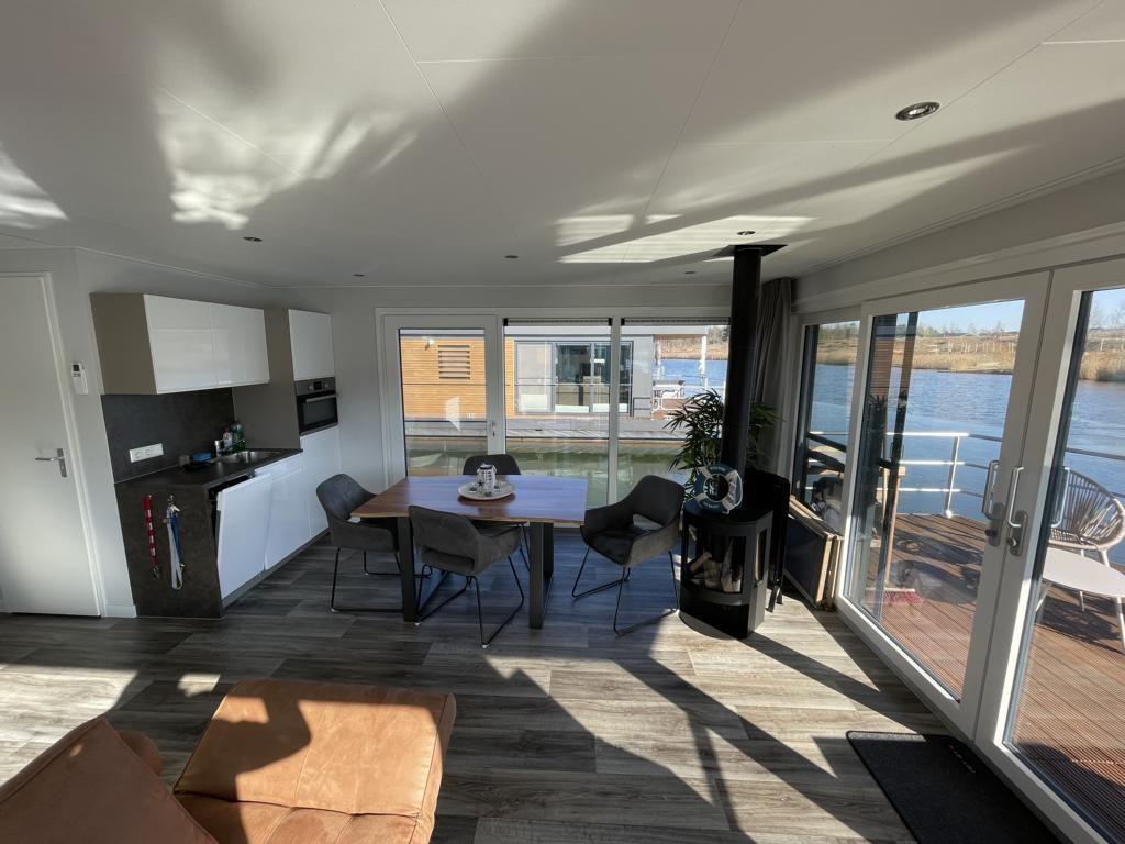 Das Floatinghouse bietet insgesamt 3 Zimmer, darunter 2 Schlafzimmer, und ist für bis zu 5 Personen ausgelegt. Der Wohnbereich ist als gemütliches Zentrum gestaltet: mit Sofaecke, TV, Radio und einem separaten Essbereich. Für ein behagliches Raumklima sorgen Heizung, Klimaanlage sowie ein Gaskamin. Sichtschutz an allen Fenstern und Fliegengitter tragen zusätzlich zu Komfort und Privatsphäre bei. WLAN steht zur Verfügung, ebenso eine praktische Erstausstattung.