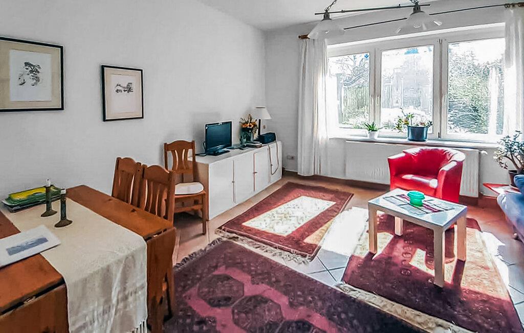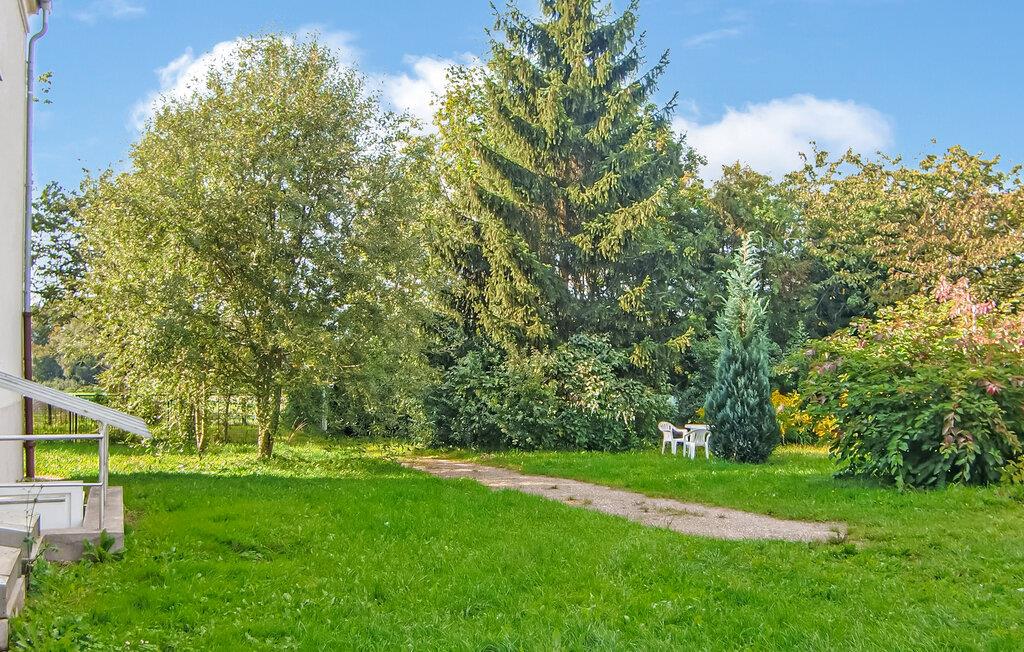 Die 65 qm große Ferienwohnung 4 bis max. 5 Personen befindet sich im Parterre eines Mehrfamilienhauses direkt neben dem Schloss und der ehemaligen Gutsanlage Blücherhof. Sie ist ausgestattet mit einem Wohnraum (Polstermöbel, SAT-TV, Esstisch), 2 Schlafräumen (1 x Doppelbett, 1 x 2 Betten, Schlafcouch), einer separaten Küche (Essplatz, E-Herd mit Backofen, Kühlschrank, div. Küchengeräte), einem Bad (Badewanne/WC) und Zentralheizung. Auf dem großflächigen Grundstück stehen eine möblierte Sitzecke im Freien mit Grillmöglichkeit und PKW-Stellplätze zur Verfügung. WLAN ist ebenfalls vorhanden.Im Gesamtpreis enthalten sind Wasser, Energie und Endreinigung. Bettwäsche und Handtücher können mitgebracht oder vor Ort gemietet werden.