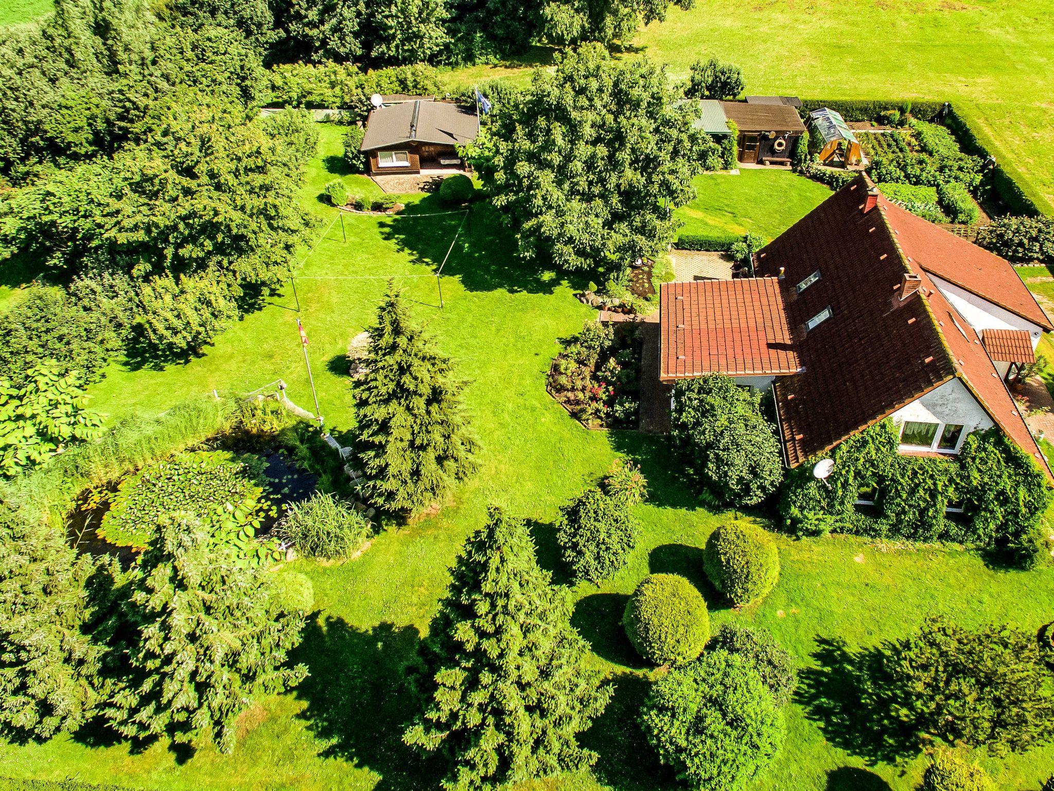 Das parkähnlich gestaltete Grundstück bietet neben dem Fischteich, Grill- und Räucherplatz auch viel Freiraum zum Relaxen und ungestörten Sonnenbaden (auch FKK möglich).