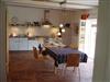 • große Küche mit Spülmaschine, Cerankochfeld, Backofen und großem Esstisch für 6 Personen
