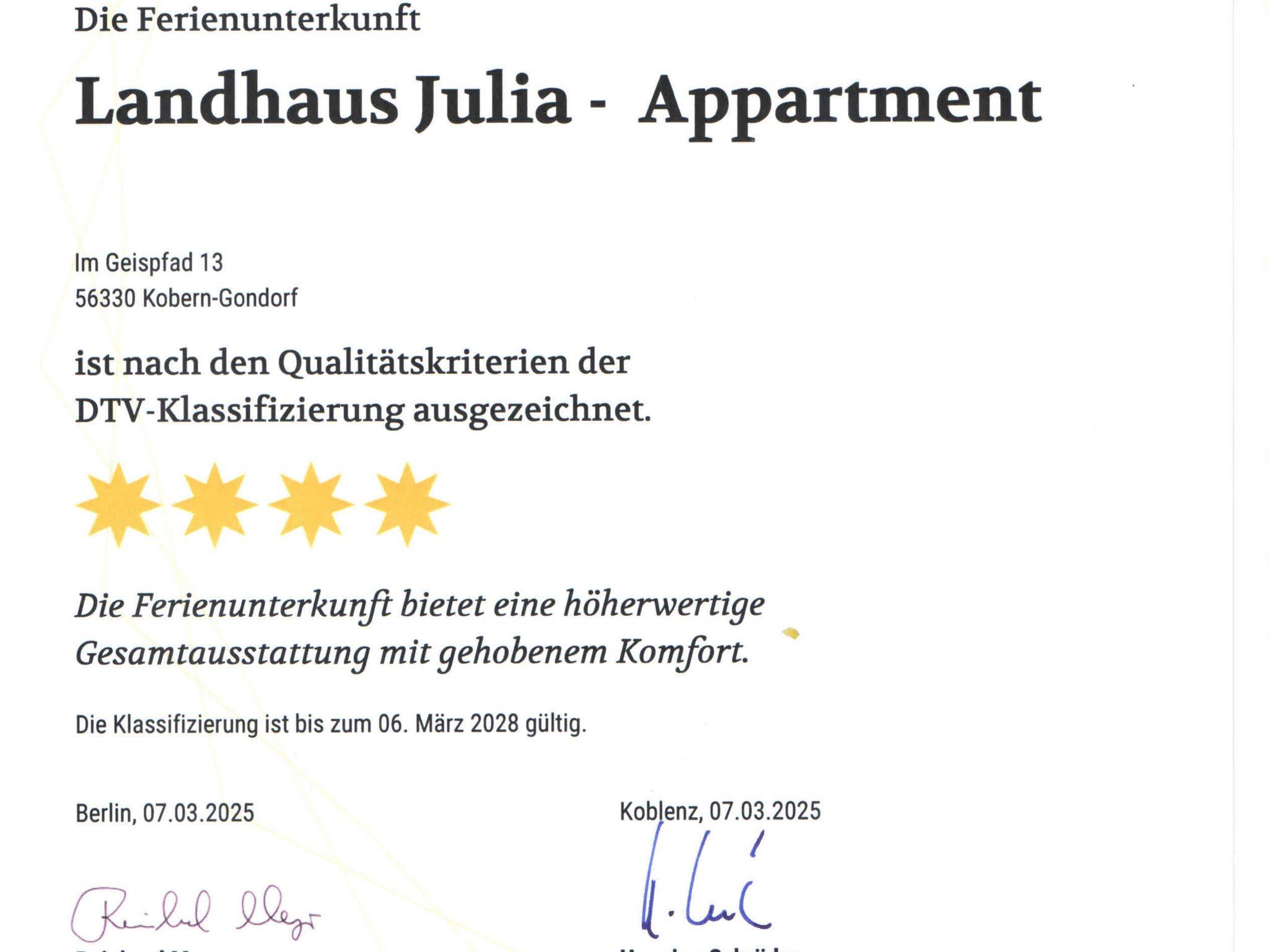 Unsere kleine Ferienwohnung im Landhausstil ist 45 m² groß. Sie umfasst einen kombinierten Wohn-Schlafbereich, eine vollausgestattete Küche mit gemütlichem Essbereich sowie ein Bad mit ebenerdiger Dusche. Terrasse und Balkon mit Moselbick.