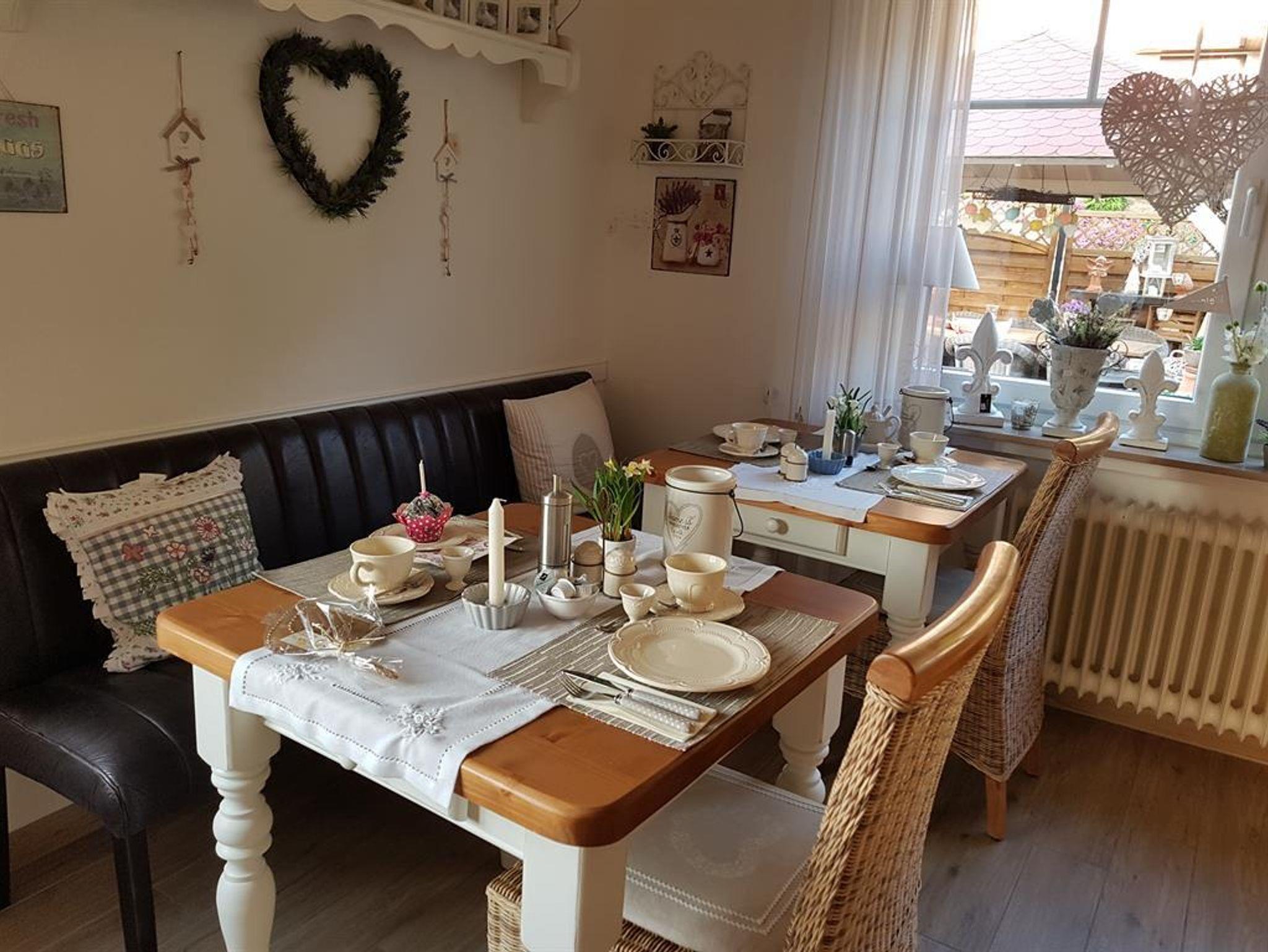 Unseren schönen sonnigen Frühstücksraum können Sie selbstverständlich auch am Abend für gesellige Zusammenkünfte nutzen.