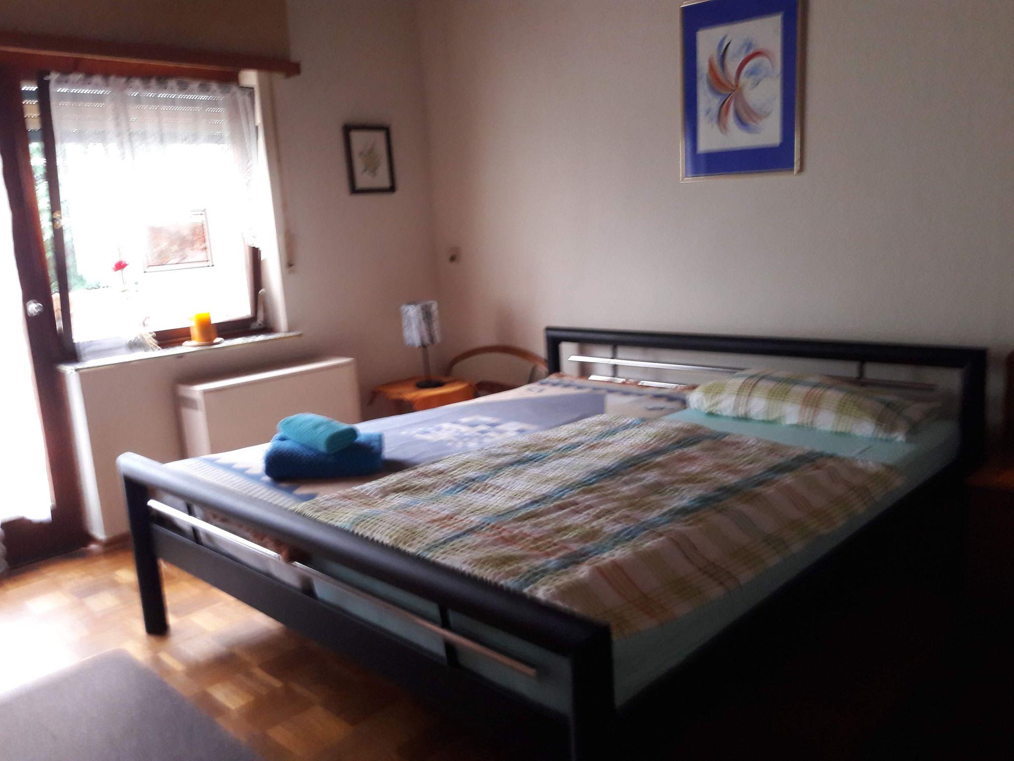 Die Wohnung besitzt ein geräumiges Wohn-Schlafzimmer mit Balkon und TV, eine komplett eingerichtete Küche mit allen notwendigen Küchengeräten wie z. B. Herd, Backofengrill, Kühlschrank und Kaffeemaschine. Ein weiteres Doppelzimmer ist mit TV und Zugang zur Terrasse ausgestattet. Im Badzimmer finden Sie eine Dusche und Badewanne vor, zusätzlich gibt es ein separates WC.