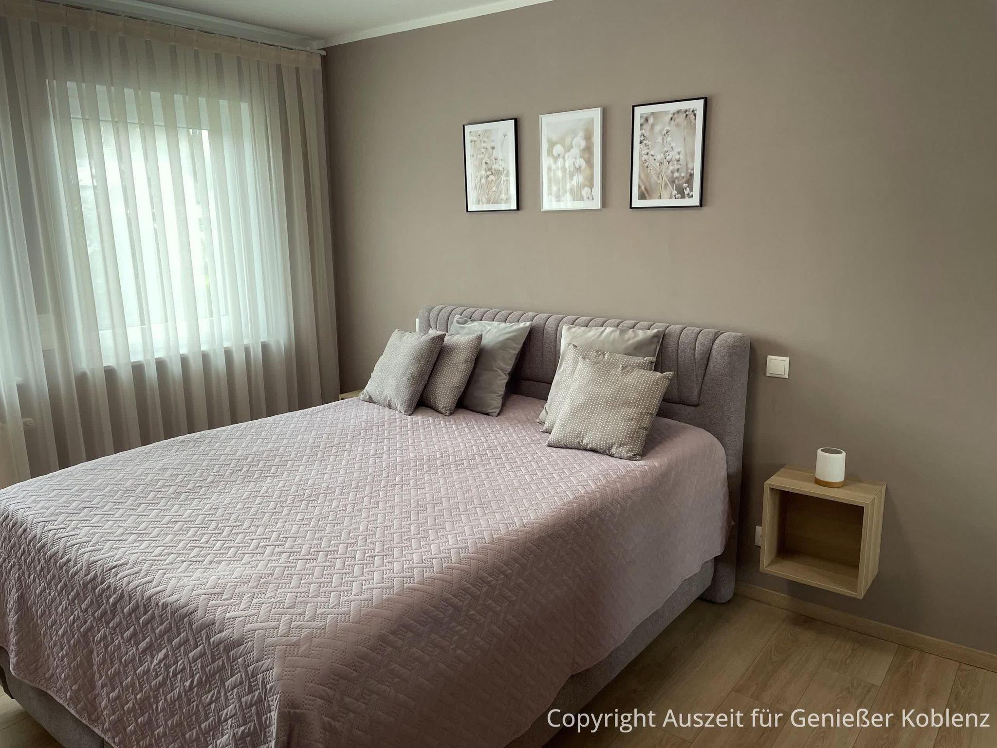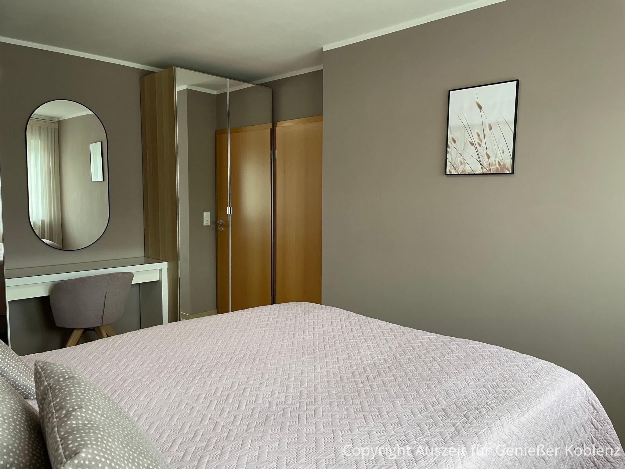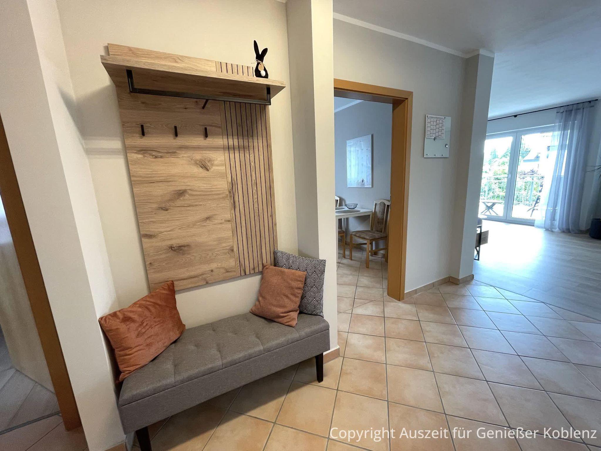 Willkommen in Ihrer stilvollen Wohlfühloase – einer ruhigen Unterkunft am malerischen Zusammenfluss von Rhein und Mosel. Hier genießen Sie nicht nur die idyllische Lage in einer der reizvollsten Regionen Deutschlands, sondern auch den Komfort und die Ruhe, um den Alltag hinter sich zu lassen. Die ca. 70 m² große, renovierte und neu eingerichtete Ferienwohnung befindet sich auf der ersten Etage eines ruhigen Mehrfamilienhauses mit 6 Wohneinheiten. Die Nichtraucherwohnung verfügt über ein Schlafzimmer (hochwerties Boxspringbett), Wohnzimmer, Küche, Balkon, sowie Bad und eine zusätzliche Gästetoilette. Der Boden besteht aus neu verlegtem Laminat und Fliesen, sodass er für Allergiker geeignet ist. Eine elektronische Türschließanlage ermöglicht Ihnen einen bequemen, kontaktlosen Zugang zur Unterkunft.