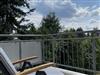 Der luftige Balkon ist großzügig geschnitten, ausgestattet mit zwei klappbaren Sesseln und einem kleinen runden Tisch. Hier haben Sie ganztägig Sonne und Blick in einen stillen, grünen Innenhof.