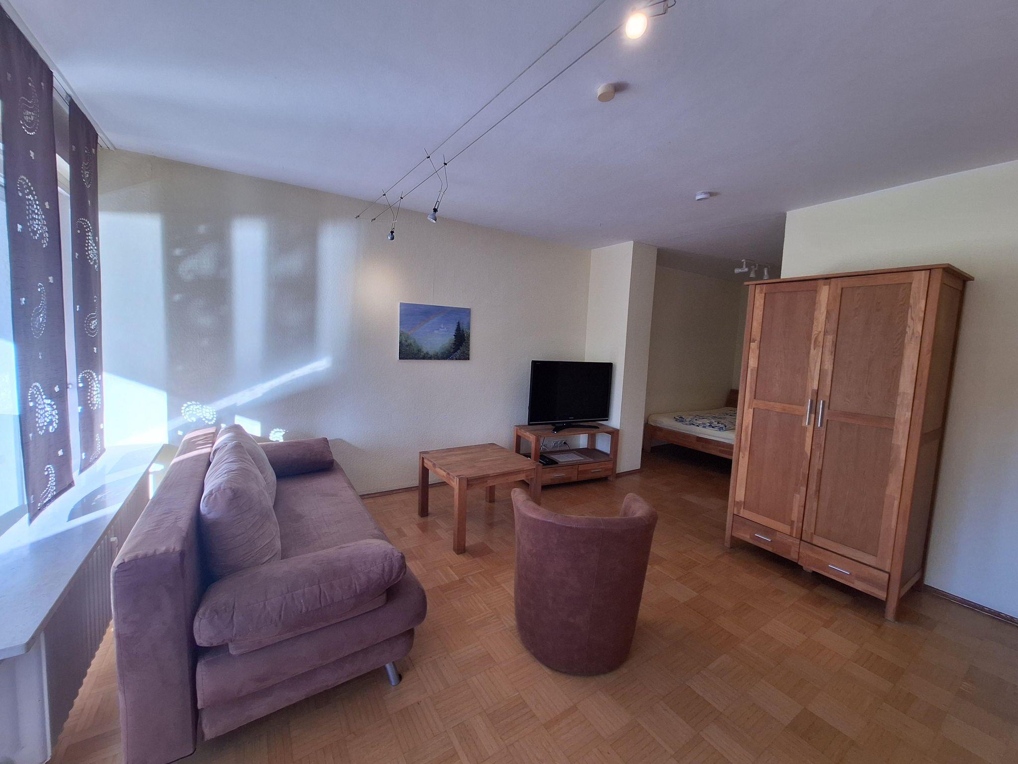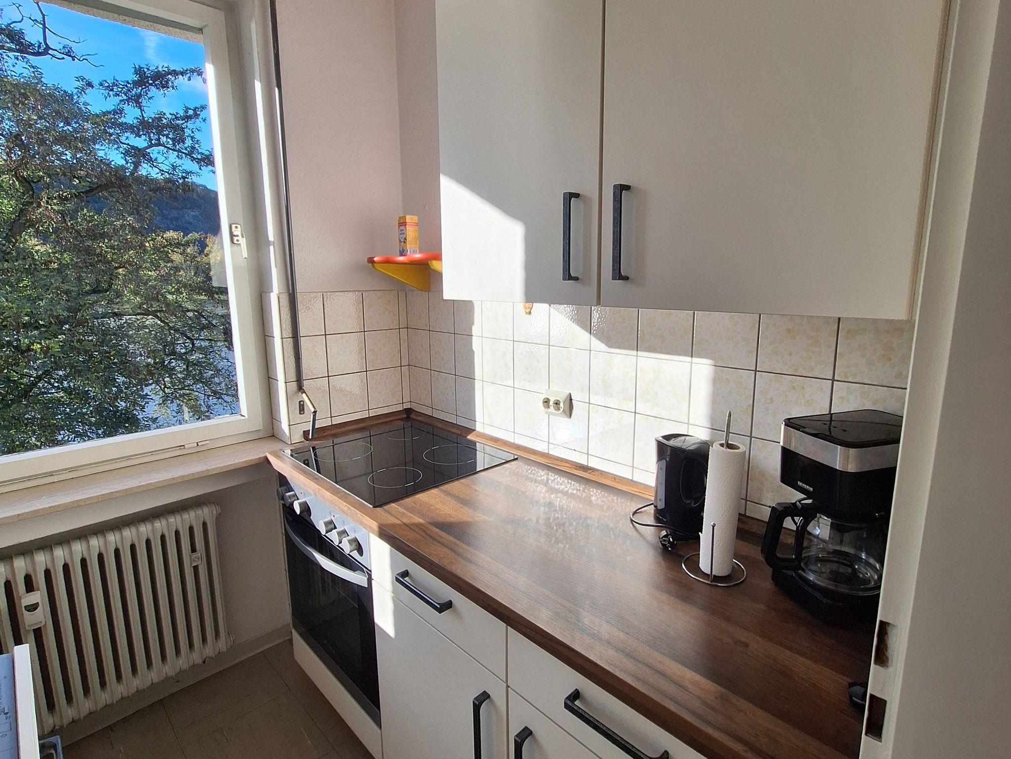 In dieser gemütlichen Ferienwohnung erwartet Sie ein offener, heller Wohnraum mit gemütlicher Sitzecke, TV und einem großen Fenster, das einen wunderschönen Blick auf den Rhein bietet. Der eingerichtete Essbereich lädt zu gemeinsamen Mahlzeiten ein und die angrenzende Loggia ist der ideale Ort, um den Tag entspannt ausklingen zu lassen.